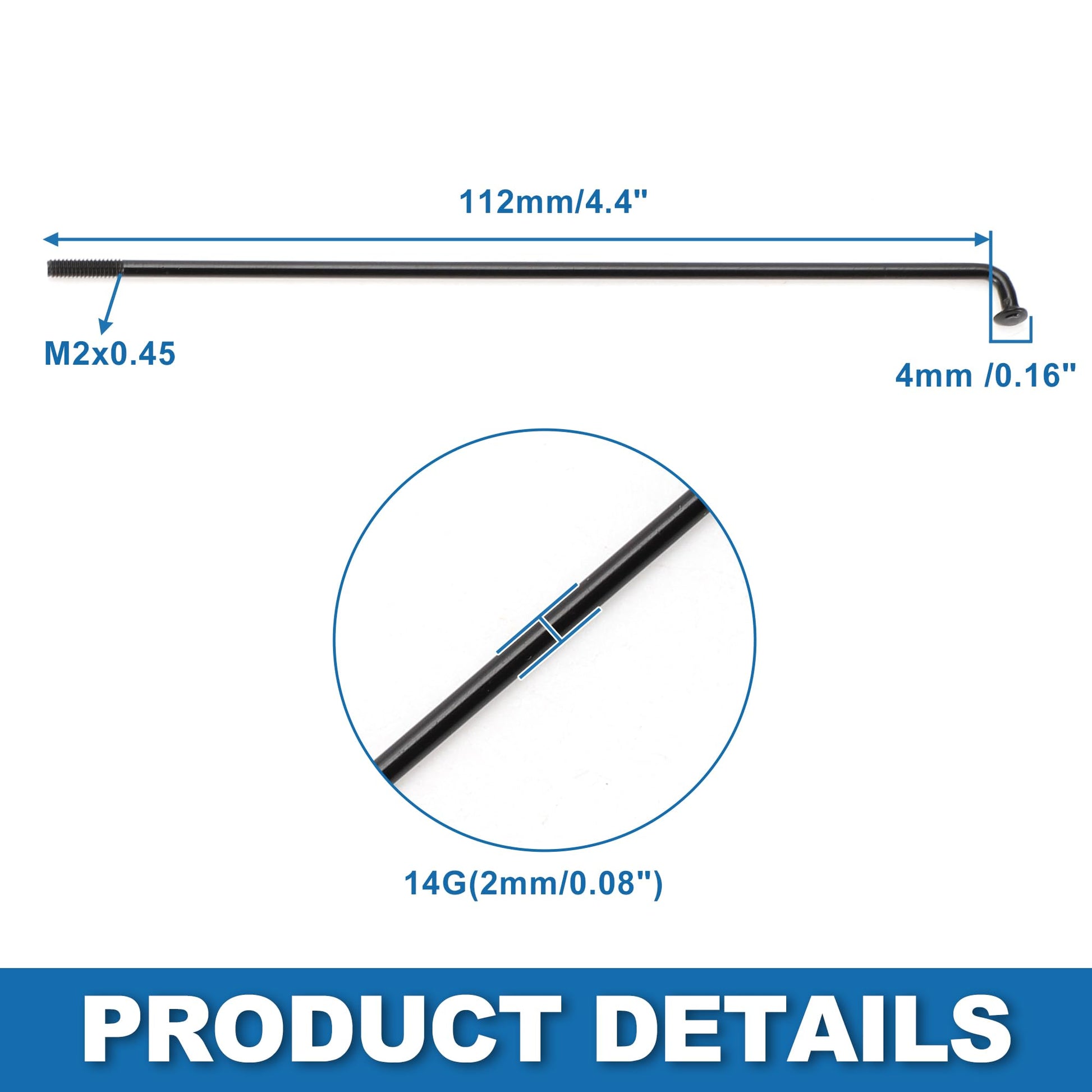 - Elbow Head Dia: 4mm /0.16", Spokes Thread Dia: M2x0.45, Spoke Shaft Diameter: 2mm/0.08", Spokes Length(without Elbow):112mm/4.4"