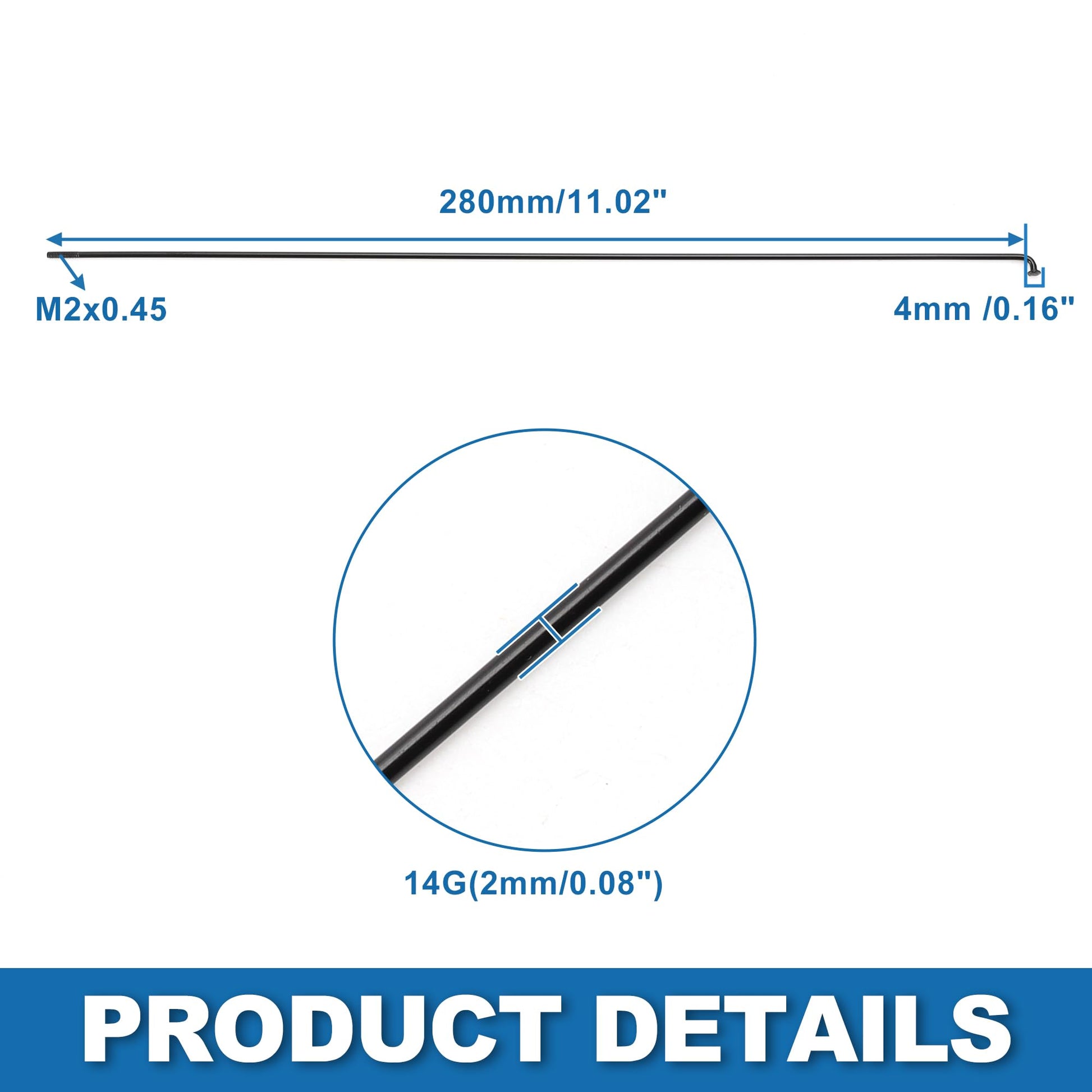 - Elbow Head Dia: 4mm /0.16", Spokes Thread Dia: M2x0.45, Spoke Shaft Diameter: 2mm/0.08", Spokes Length(without Elbow):280mm/11.02"
