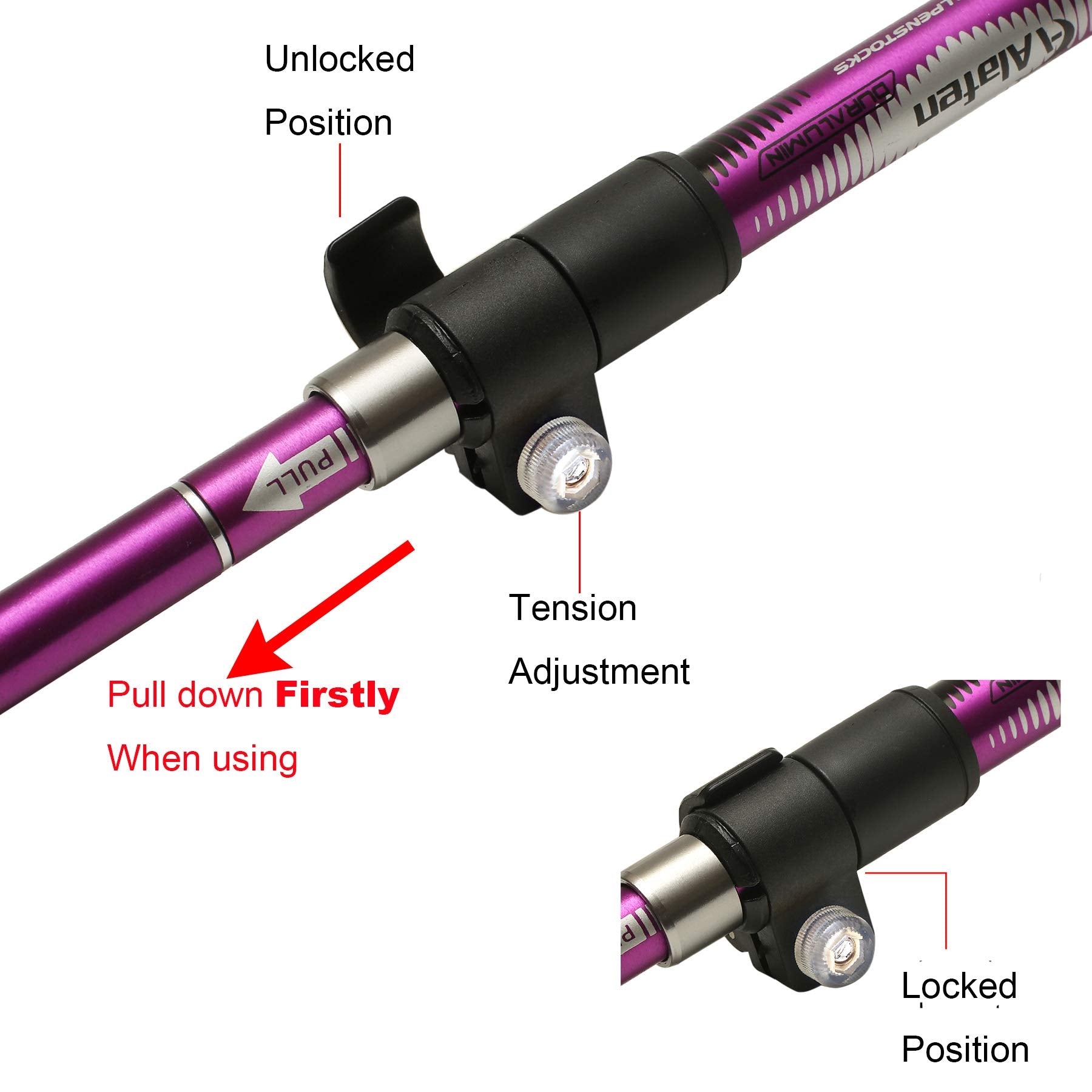 A ALAFEN Aluminum Collapsible Ultralight Travel Trekking Hiking Pole for Men and Women Light Purple 1PC