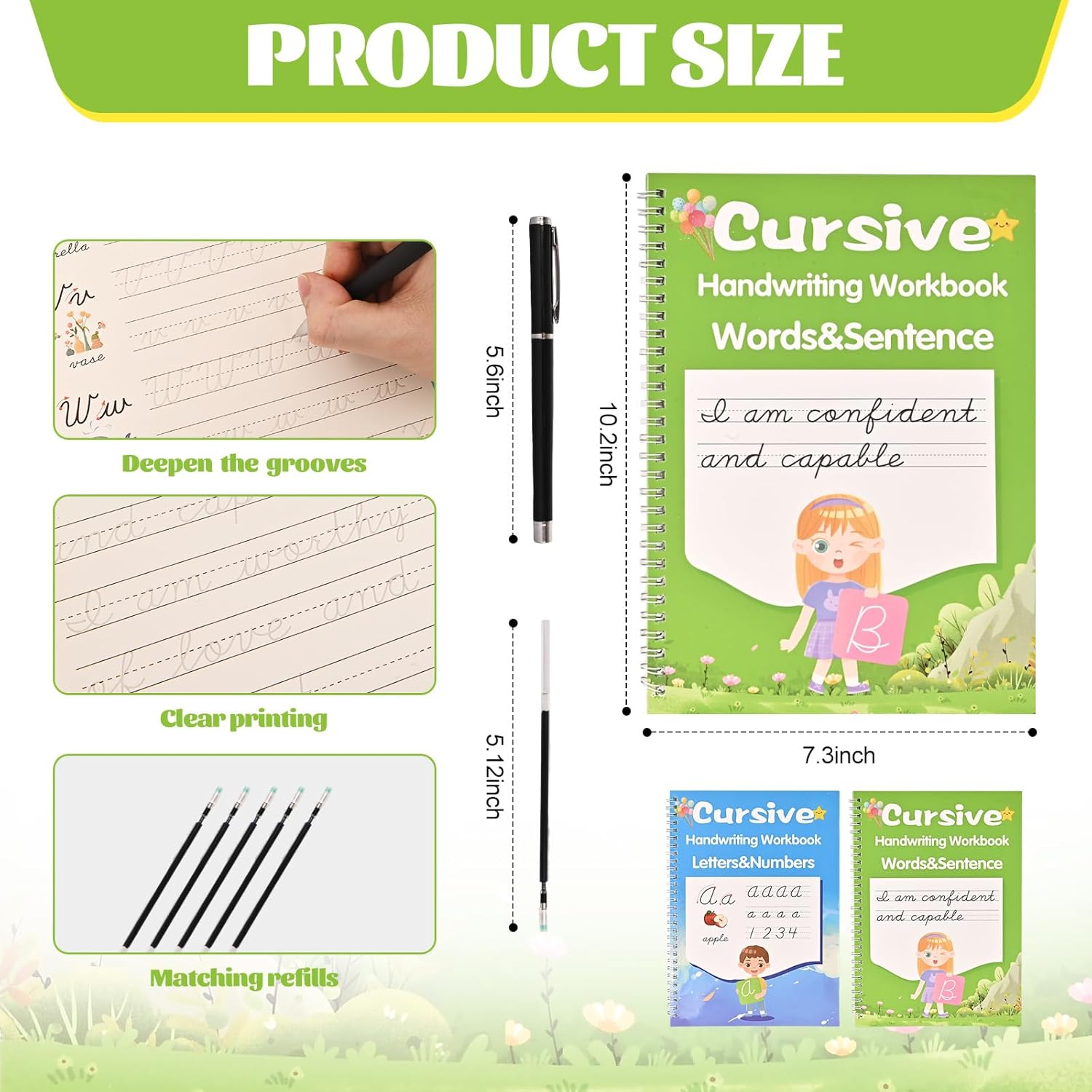 - ✔ See Visible Progress Fast Designed with structured grooves and guided lines, this cursive letter tracing book features larger handwriting spaces than standard books—perfect for beginners. It helps children quickly improve their cursive handwriting and overall penmanship. Just a few uses can show noticeable results!