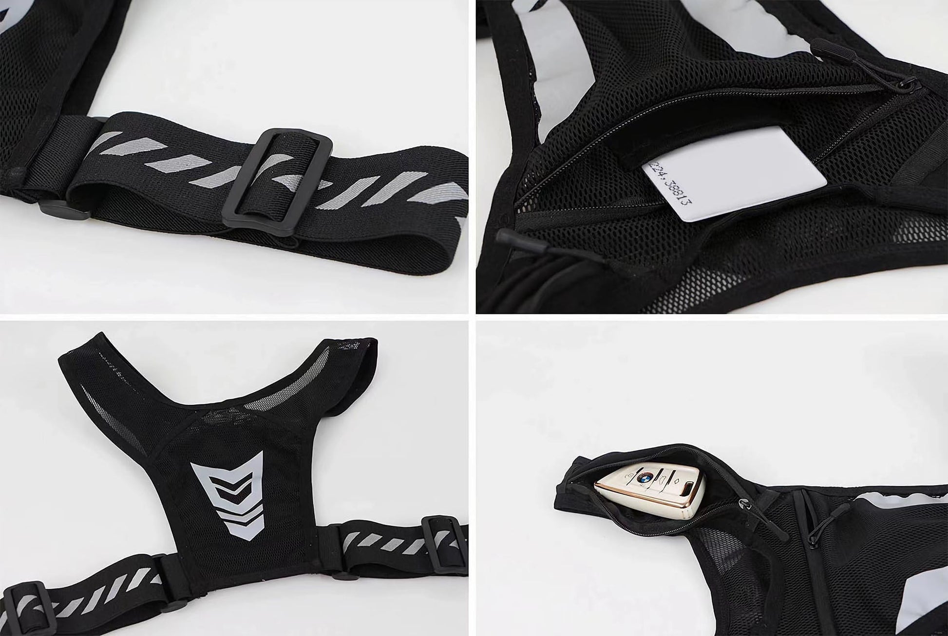 - Quick-drying, lightweight and breathable: the run vest is made of lightweight nylon material, the quick-drying fabric can make it easier for users to keep their skin dry when sweating, and the pockets can store items such as cell phones, keys, water bottles and other items, and the small pockets store the basics, so that the wearer can hardly feel the weight of the undershirt when exercising, which reduces the burden and improves the efficiency of the exercise.