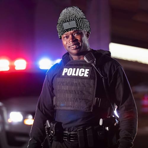 Ababalaya American Flag Knit Watch Cap, Satin Lined USA Multi-Season Army Military Tactical Beanie, Reflective Beanie