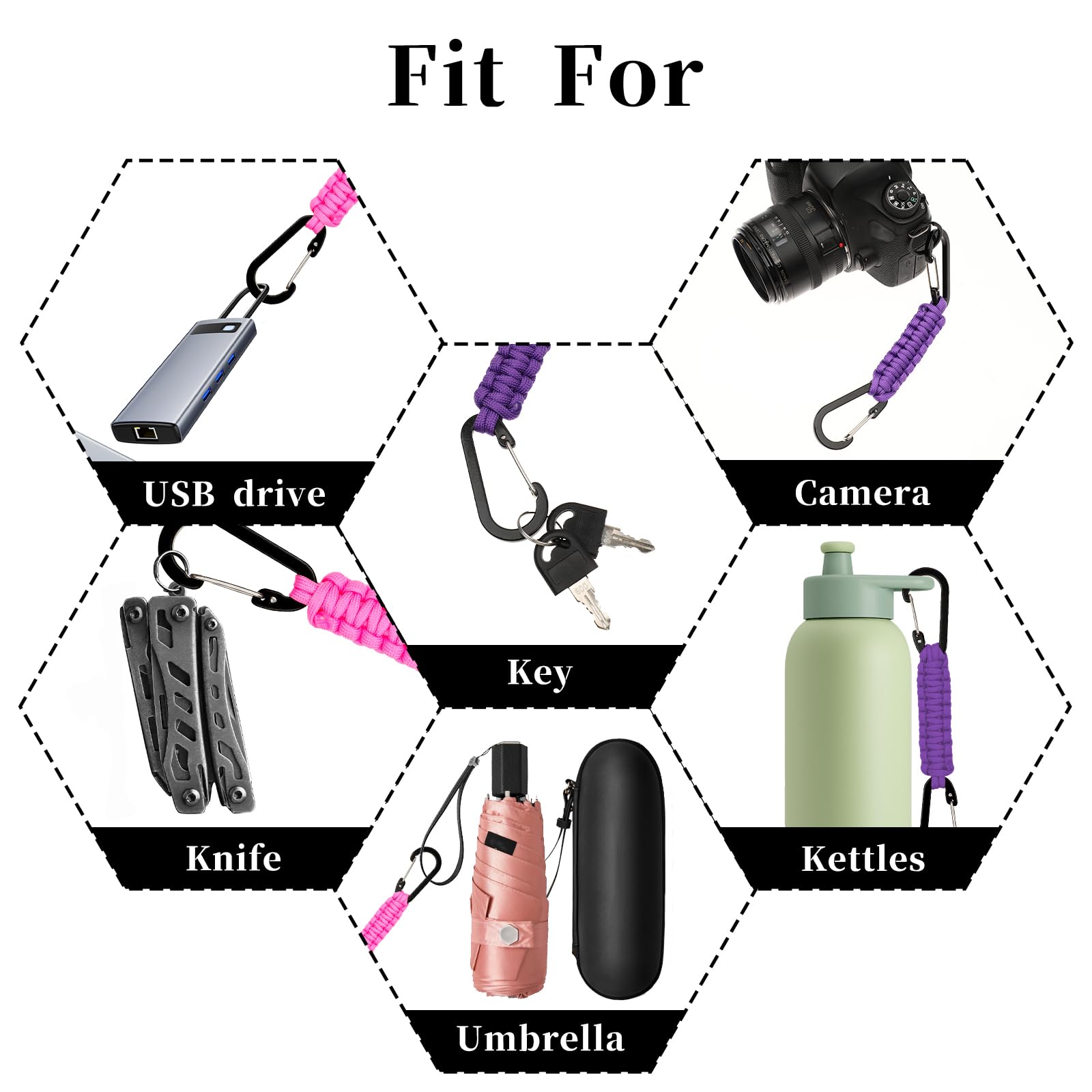 - Package Includes: You will get 2 pieces of purple paracord keychains and 2 pieces of pink paracord keychains, and the cords have loop hooks on both ends for your convenience. The colors are vibrant and there are enough of them for your outdoor activities.