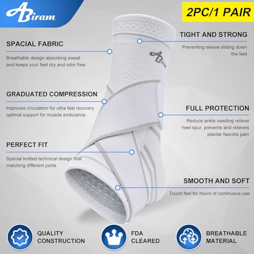 ABIRAM Ankle Brace for Women & Men, Ankle Compression Sleeve, Foot Sleeve with Wrap, Ankle Support, Foot Brace for Sprained Foot & Arch, Plantar Fasciitis Relief Socks, Achilles Tendonitis, Sports