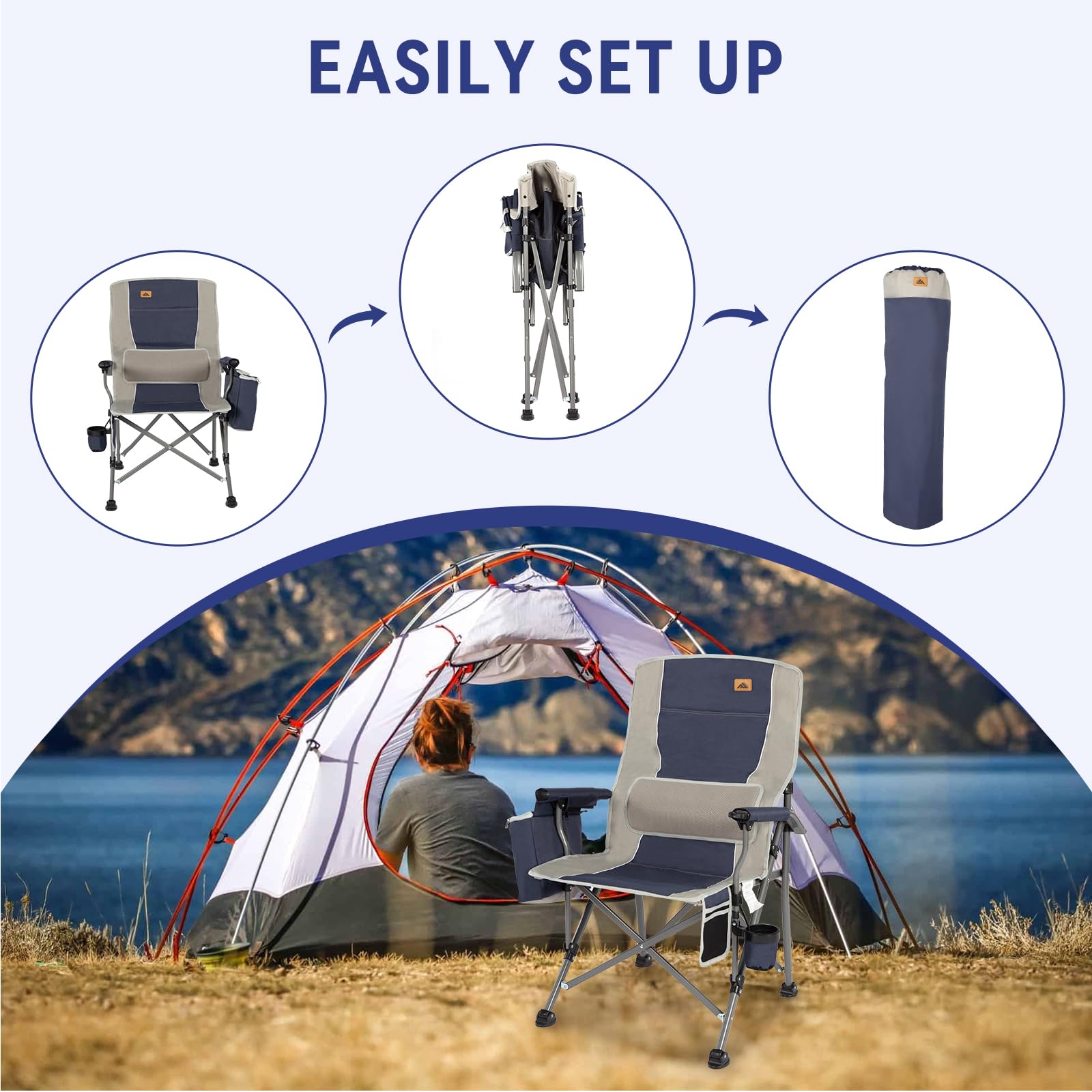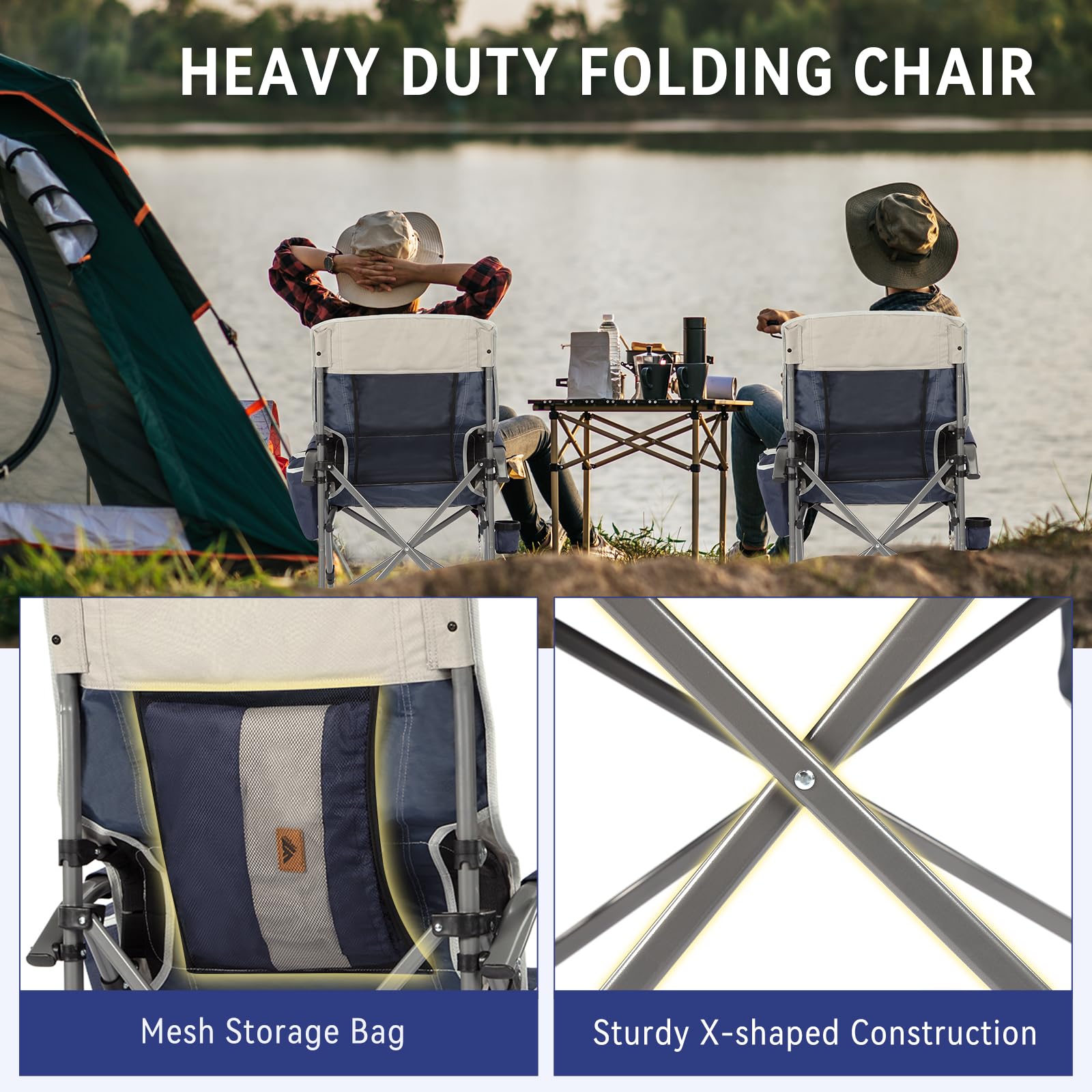 Ablazer Camping Chairs for Adults, Support 350 LBS Folding Chairs for Outside, Lawn Chairs Heavy Duty with Cooler Bag & Cup Holder (Blue & Grey)