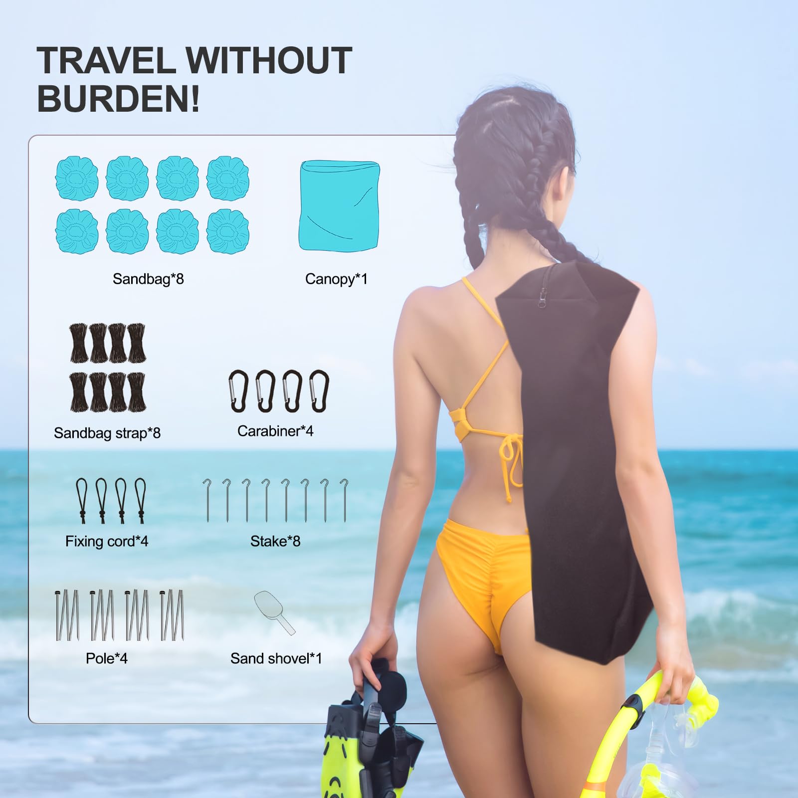 - 【Convenient Portability】You can effortlessly carry lightweight beach canopy tent sun shade for 10 people wherever you go. A waterproof storage bag easily fits in the trunk of a car or luggage compartment. It's available in sizes suitable for accommodating 4, 6, or 8 people, making it ideal for couples, families, or small gatherings of friends in the backyard. If you experience any issues, please don't hesitate to contact us.