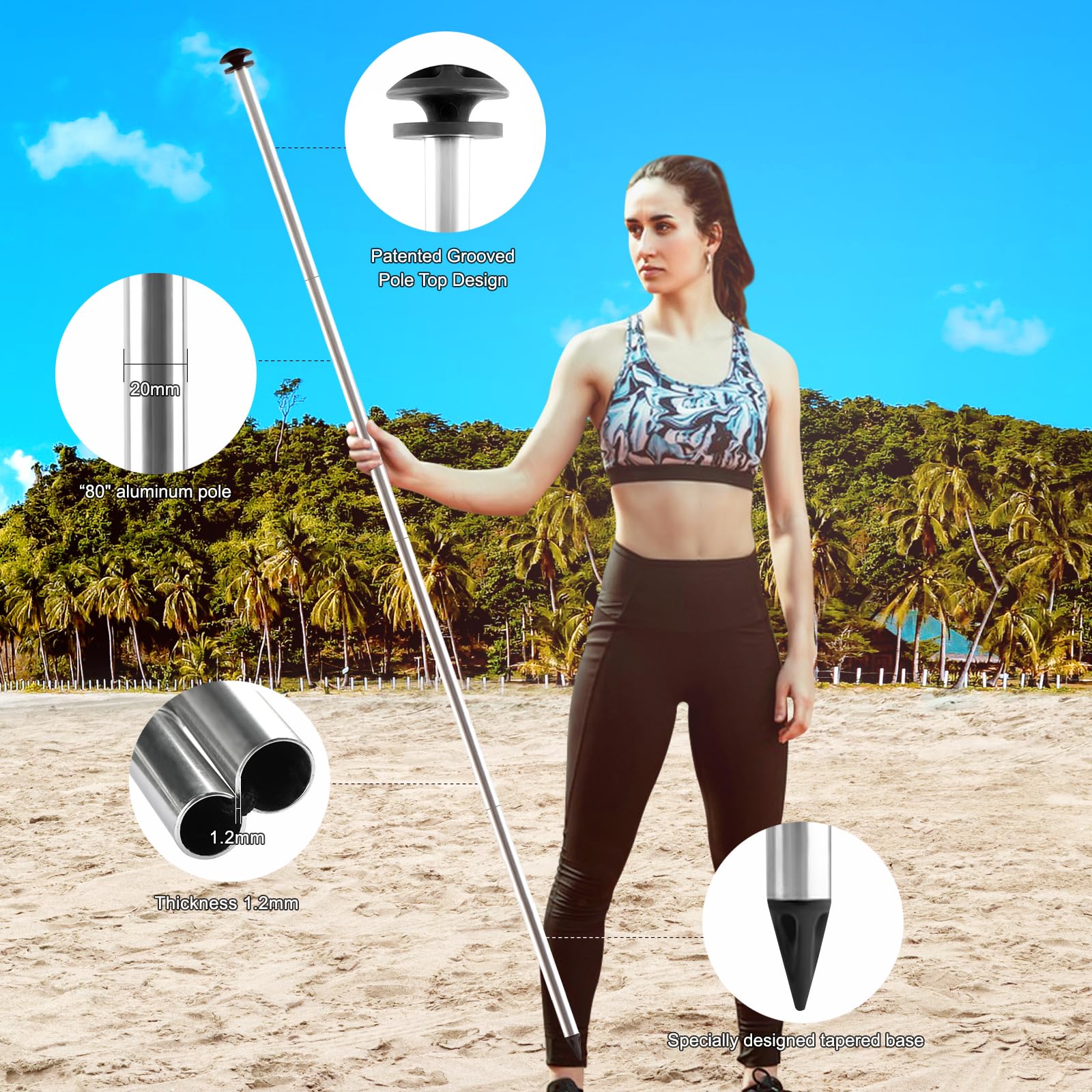 - 【Say goodbye to dumping troubles】 Spike groove design at the bottom of the support pole enhances stability, making it perfect for use on the beach, grass, backyard, lake fishing, and RV camping. 8 pull-out sandbags offer even more stability and convenience than the traditional four, ensuring that the canopy stays solidly in place.