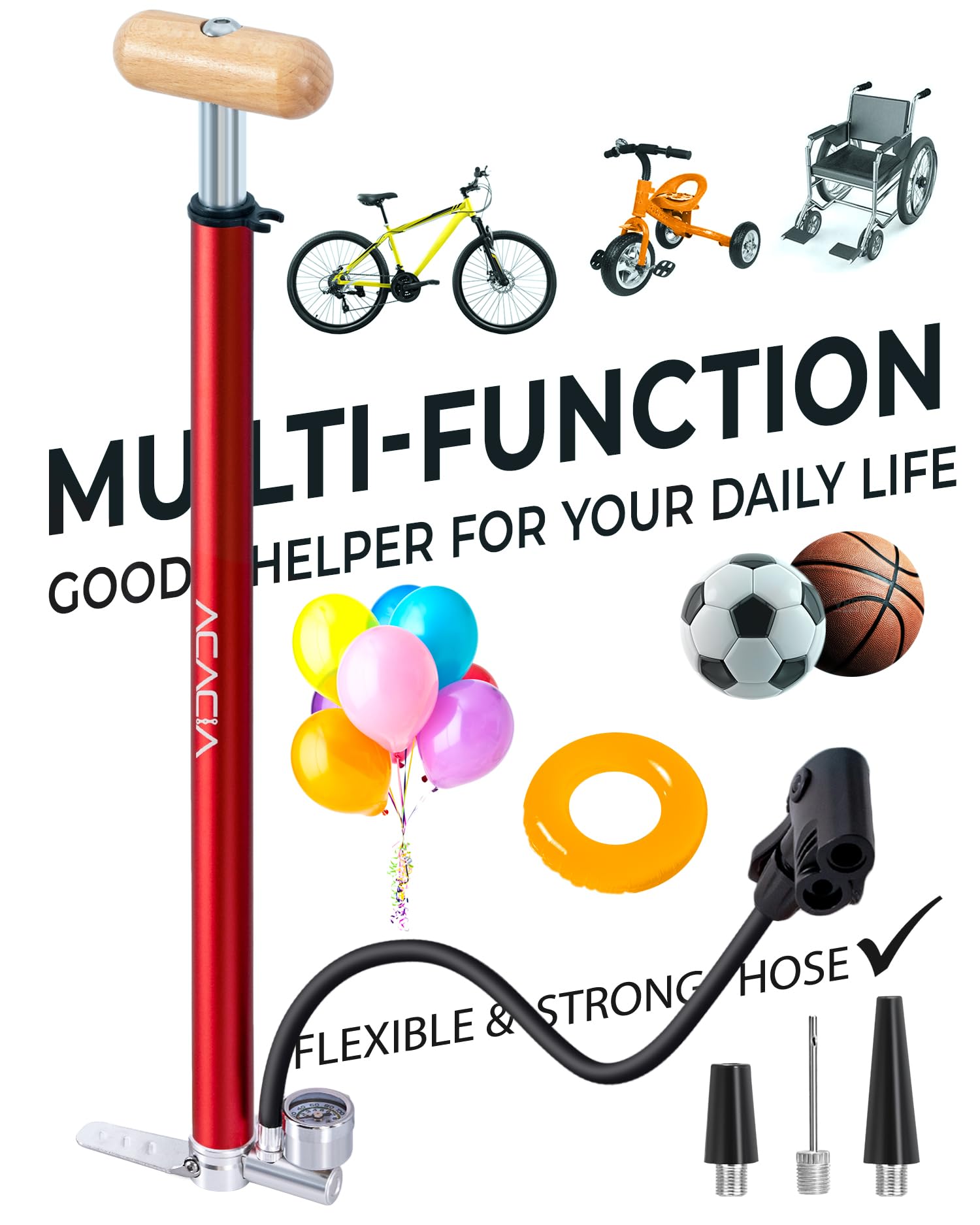 Packing Include: ACACIA Bike Pump x1 Air Inflation Needles kit x1