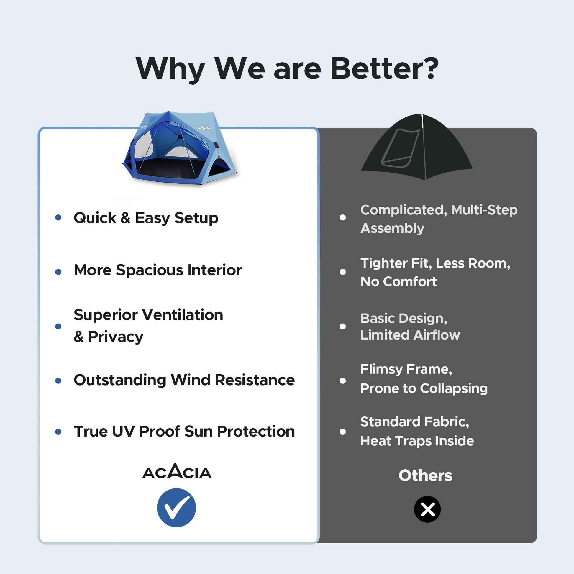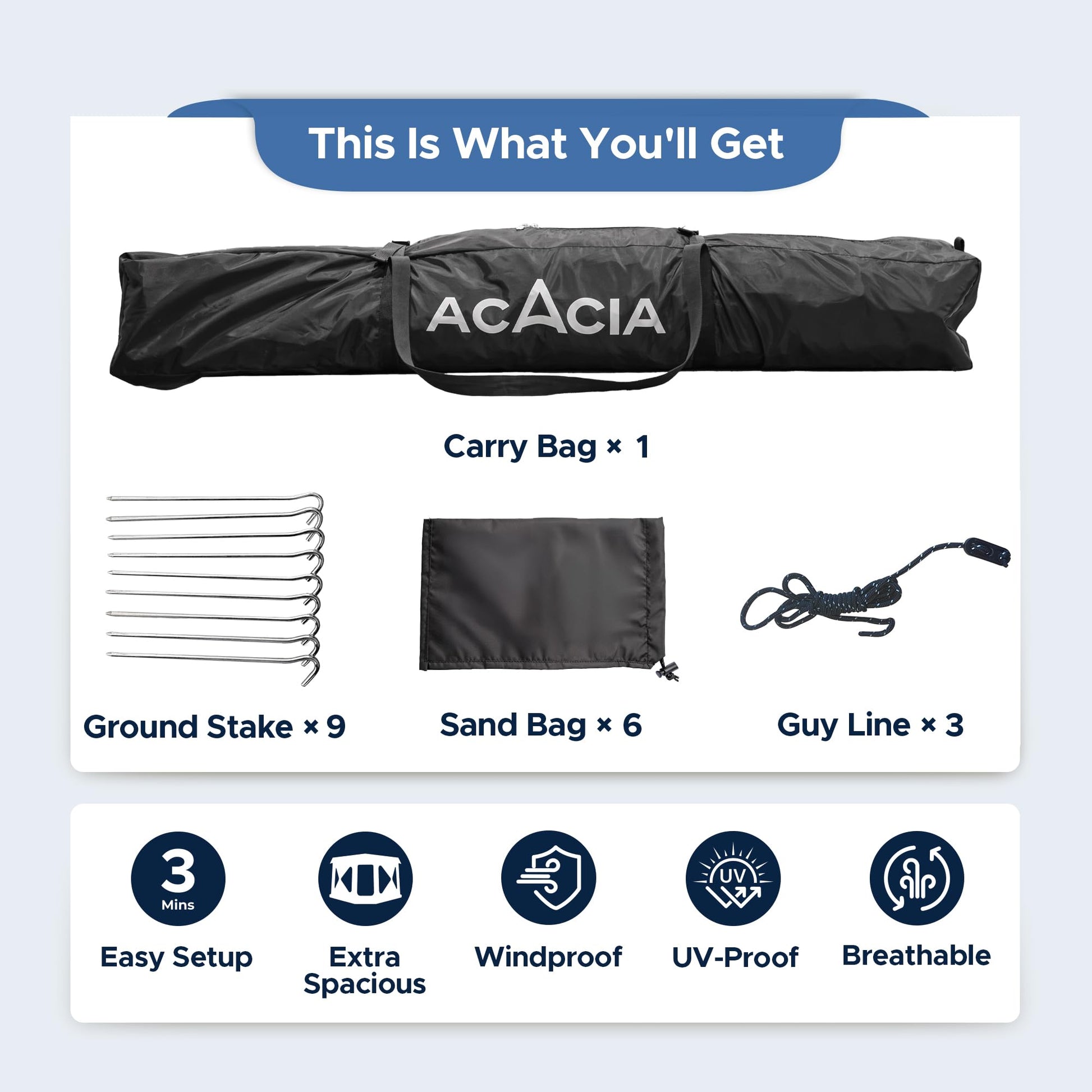 ACACIA Sun Shelter Pop up Beach Tent, 4-Person Portable Camping Tent with UPF 50+ Protection, Easy Setup Sun Shade, 9.5×9.5ft Privacy Sunshade for Beach, Camping & Backyard