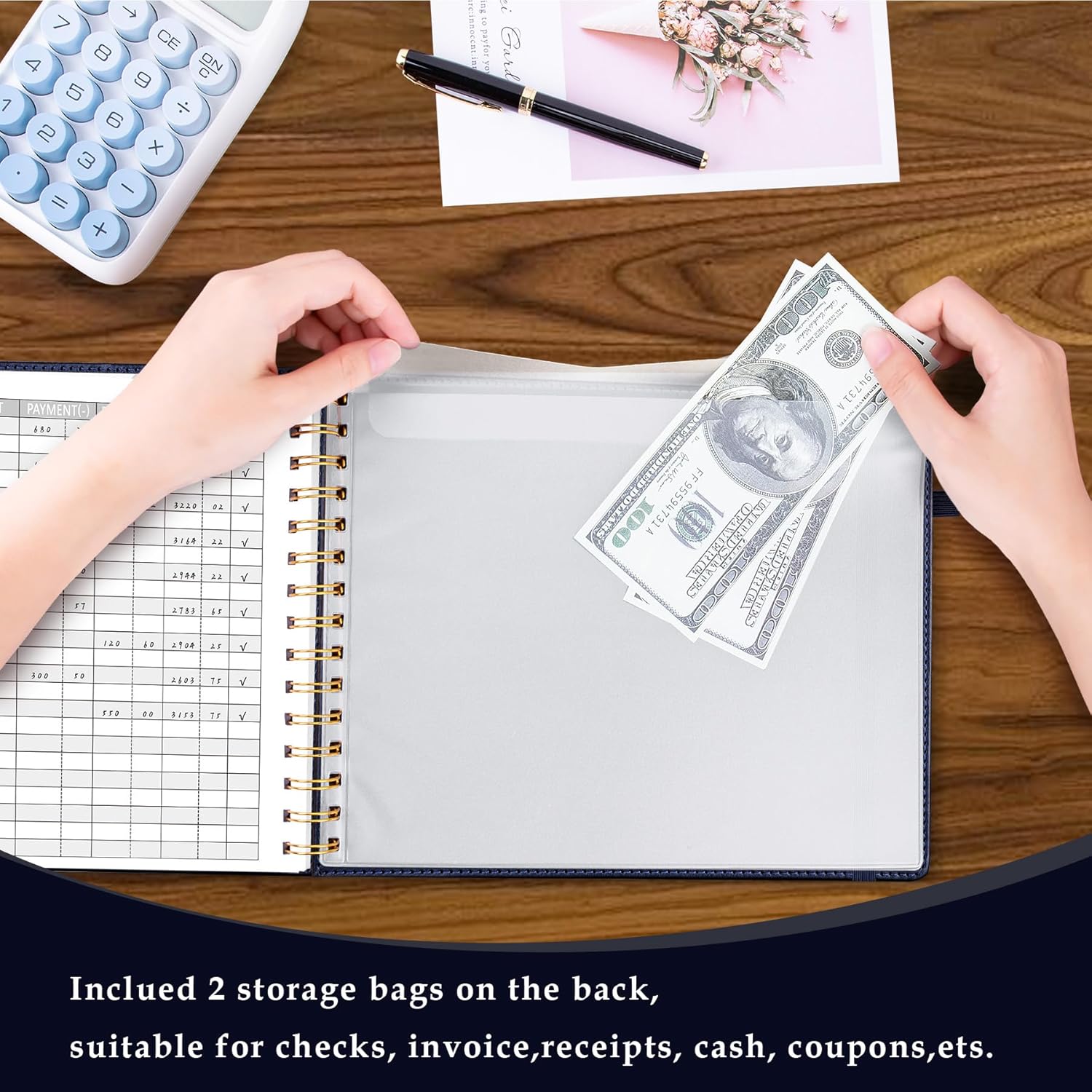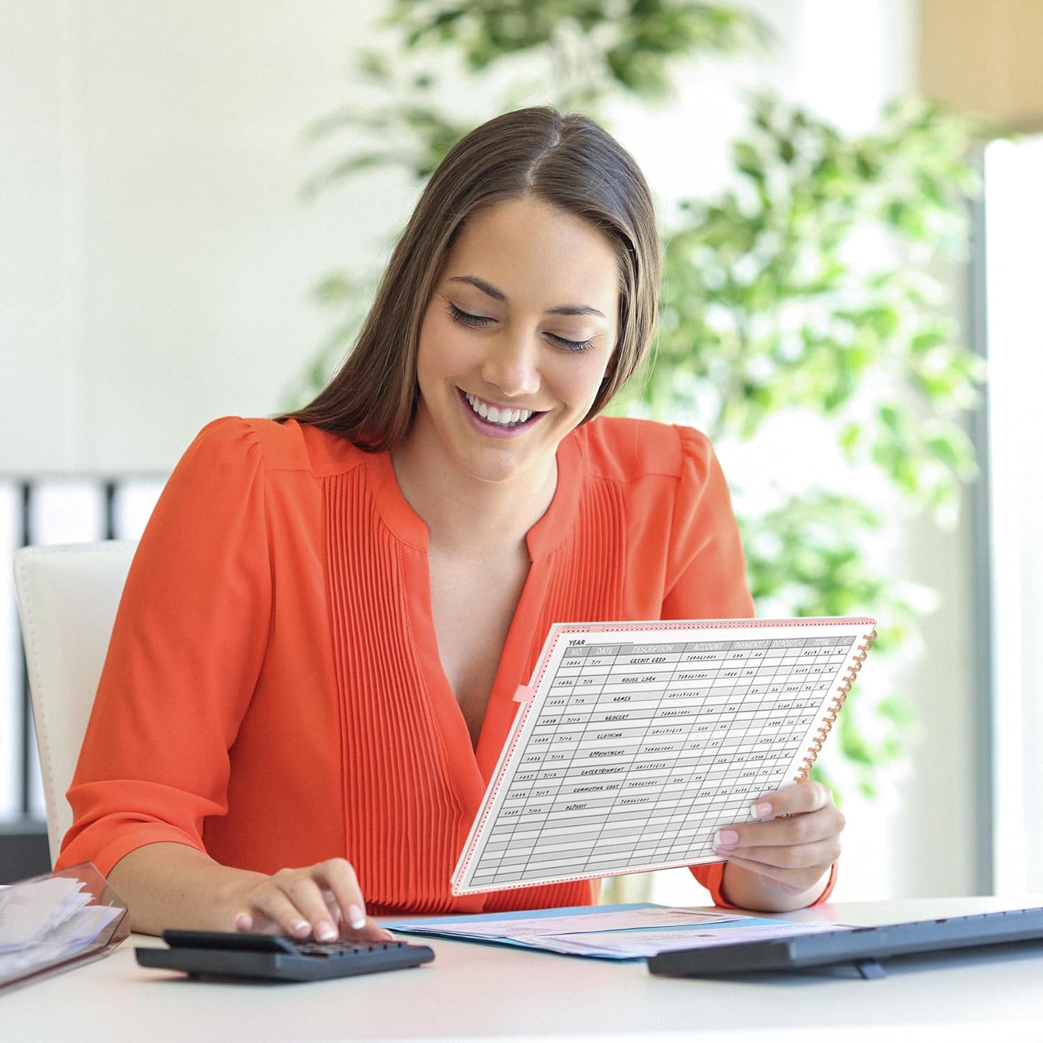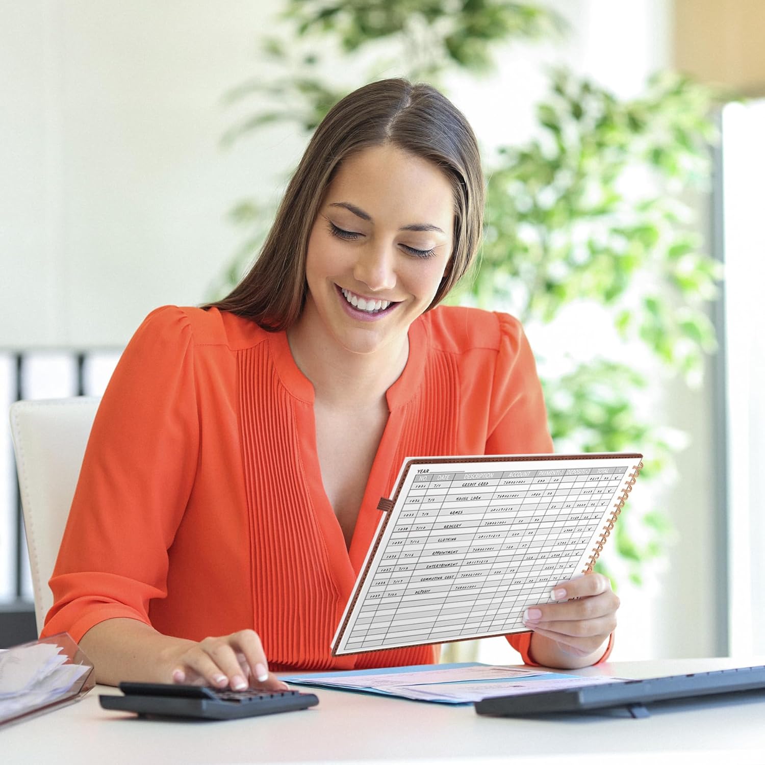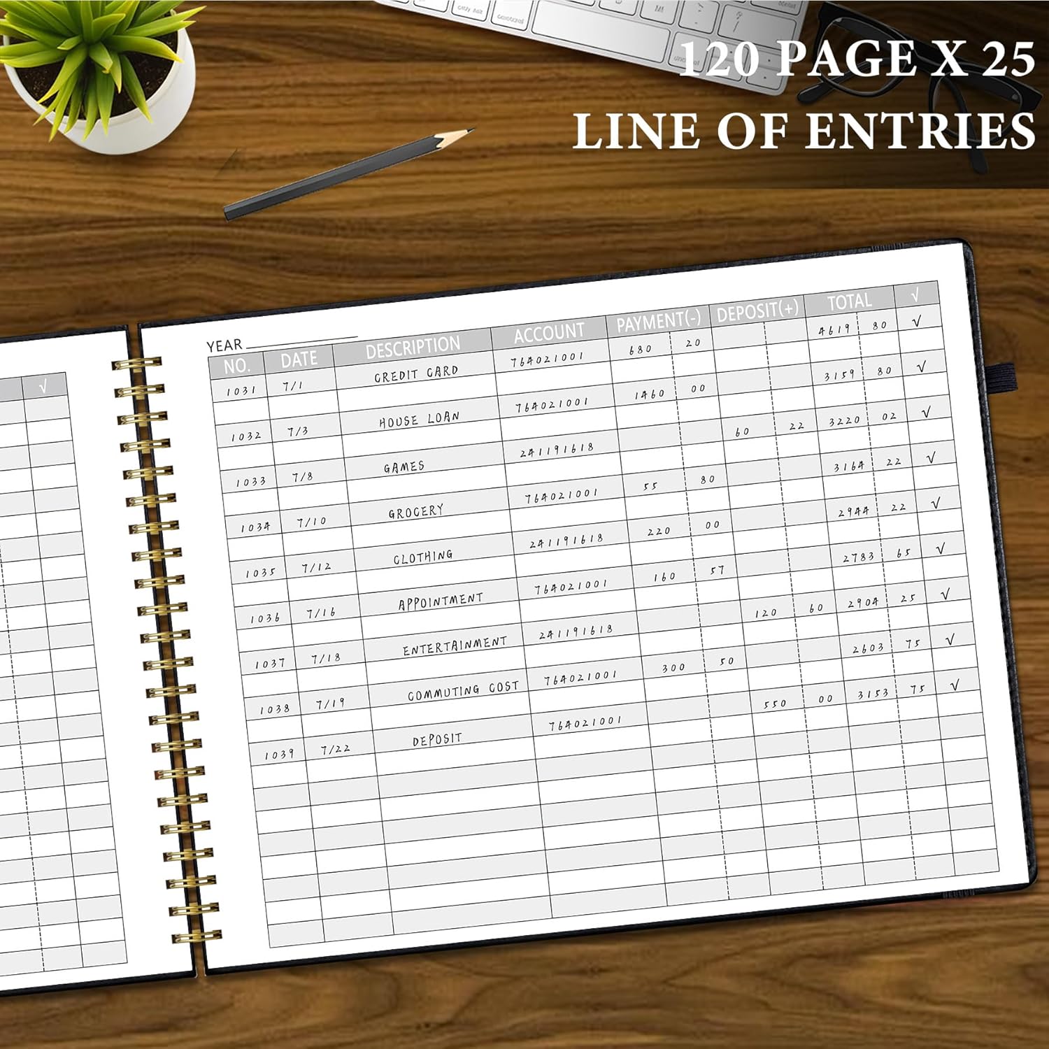 - Upgraded Material: The accounting book is PU leather hardcover, made of 100gsm thick paper for reducing ink leakage, 25 lines per page, a total of 3000 lines. Come with a calendar page, an elastic band, a pen holder, 2 PVC storage bags on the back, a two-wire spiral design for 360° page turning, and flat placement
