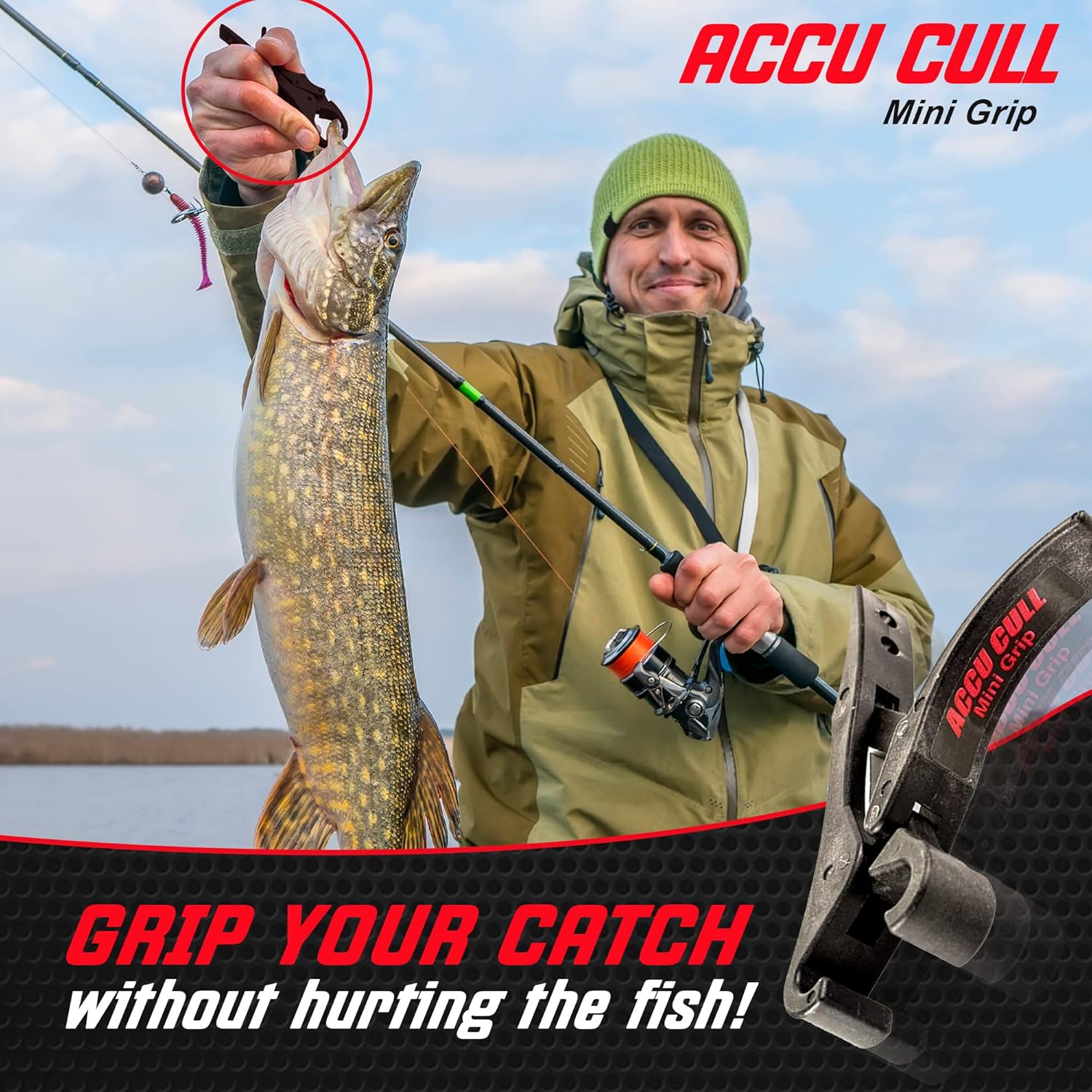 - COMPACT AND PORTABLE DESIGN: The Accu Cull Fish Gripper easily fits into your tackle box or fishing vest. Its portable size doesn't compromise strength, making it a versatile addition to your fishing accessories. This compact tool is always ready whether ice fishing, surf fishing, or enjoying a day on the lake. The sleek design ensures it won't get tangled with other gear, allowing quick access during crucial moments. Maximize your tackle box space with this efficient tool.