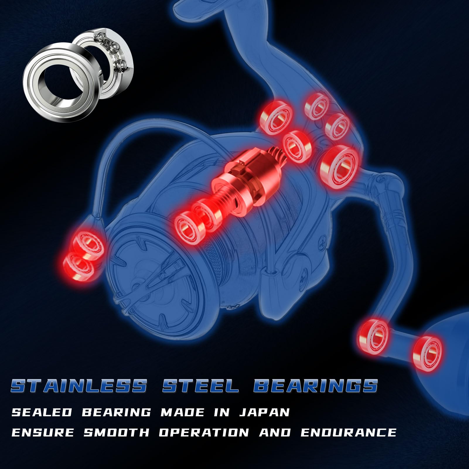 - Waterproof Design -The saltwater spinning reel use quality silicone waterproof rings at 6 key positions, which are rustproof and corrosion-resistant, significantly extended service life
