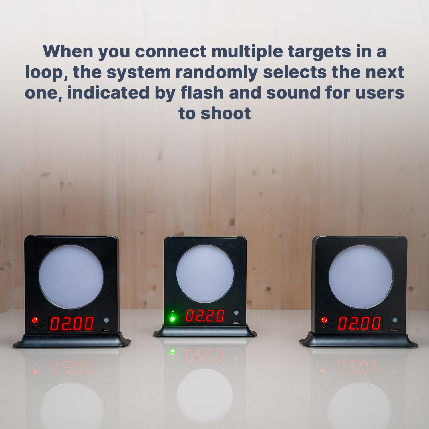 - ✅ Customizable Training Sessions: Accurize mini target allows you to connect up to 7 targets screen in a loop. If you use several targets , the system will choose which target to hit for randomized target selection. Each session consists of 10 shots, with the system tracking and displaying reaction times for precise feedback.