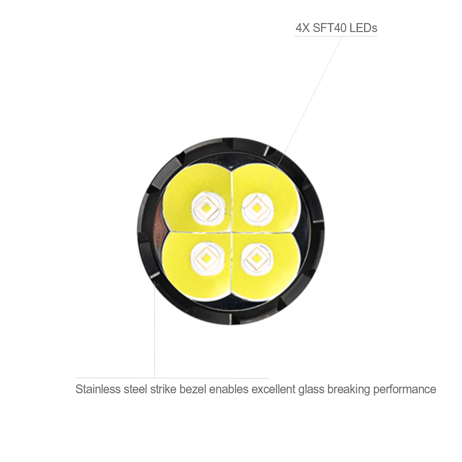 - High Lumens Tactical Flashlight:The Defender P18 delivers a max output of 5000 lumens and a max beam distance of 688 meters, from 4 x SFT-40 LEDs. It is ideal for long range search, hunting, tactical and other purposes.