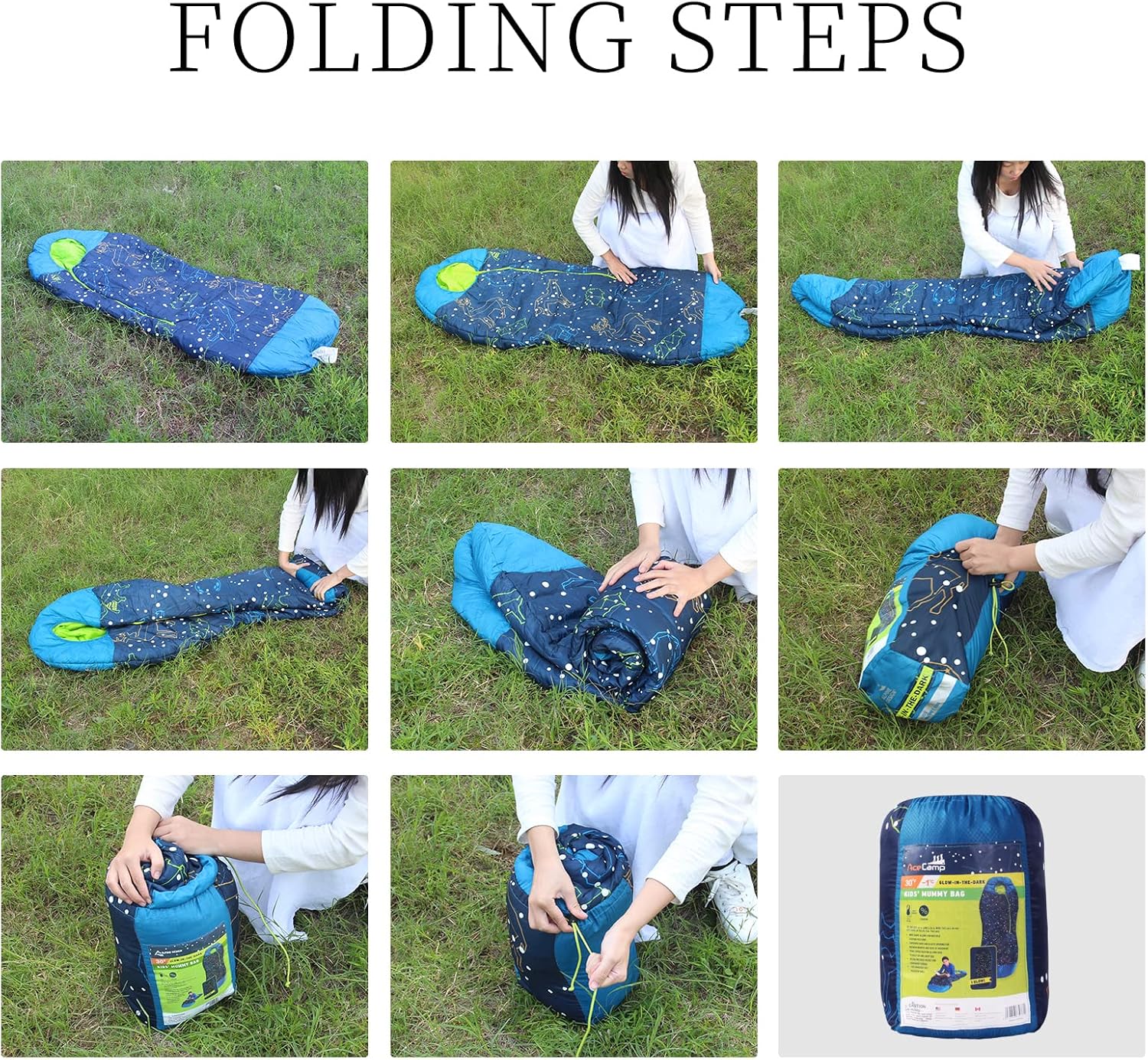 AceCamp Glow in The Dark Mummy Sleeping Bag for Kids and Youth, Temperature Rating 30°F/-1°C, Water-Resistant for Camping, Hiking, and Slumber Party