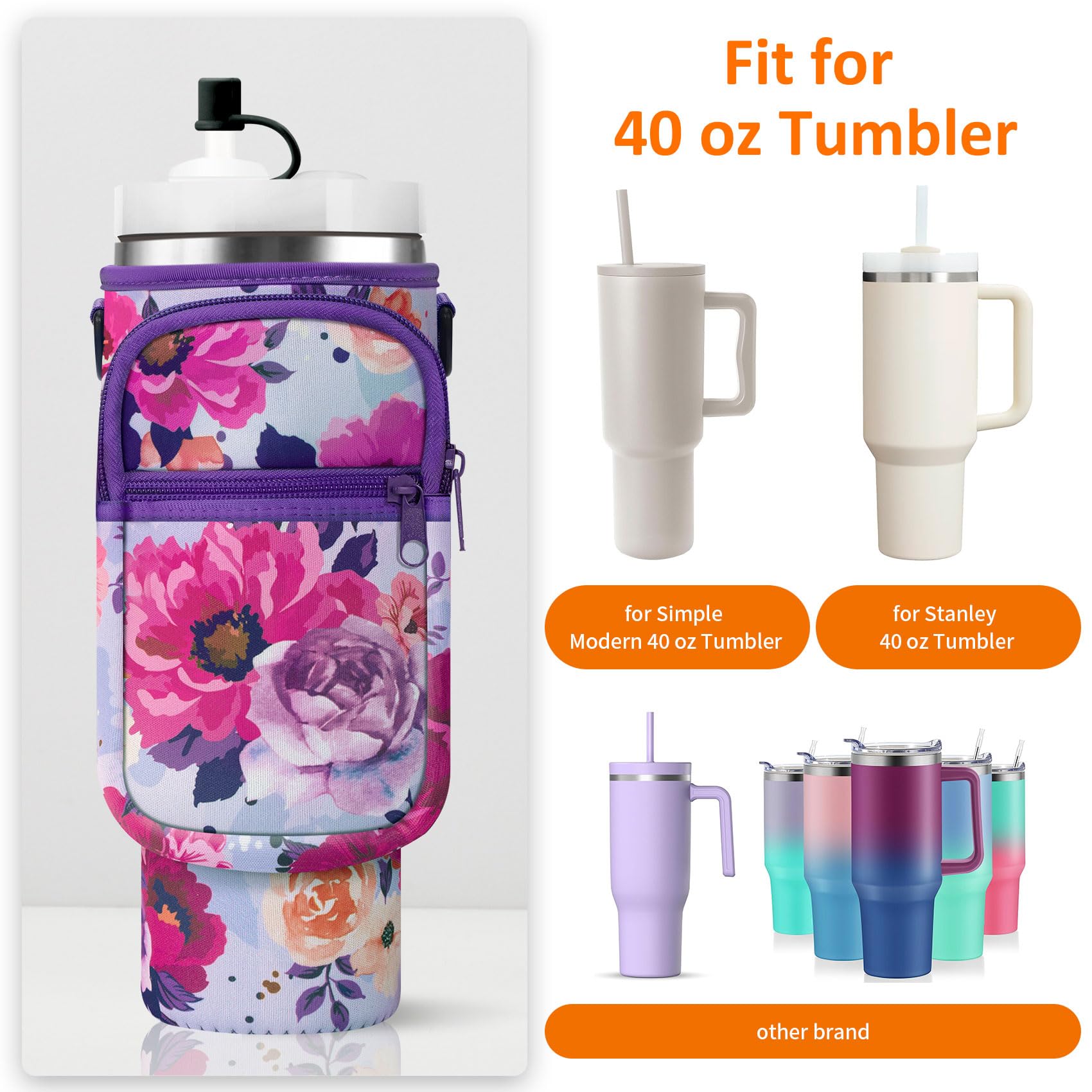 - 【Perfect for Stanley 40 oz Tumbler with Handle】The water bottle carrier is designed for Stanley 40 oz tumbler with handle, Simple Modern 40oz tumbler with handle, and other brand. It's perfect match for Stanley Quencher H2.0 40 oz and Stanley Adventure Quencher 40 oz. The snug fit of the carrier ensures that your tumbler stays securely in your car cup holder.