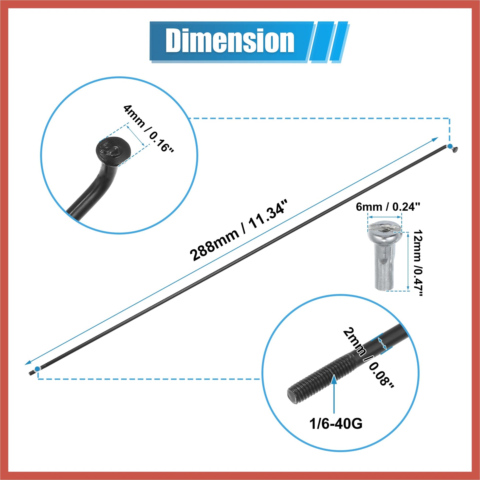 - Car Accessories: Dimensions: Spokes Size: 293x8mm / 11.54"x0.31"(L*W), Spokes Shaft Dia.: 2mm / 0.08", Thread Size: 1/6-40G, Elbow Head Dia.: 4mm / 0.16", Spokes Length(without Elbow): 288mm / 11.34", Nipple Size: 12x6mm / 0.47" x 0.24" (L*D)