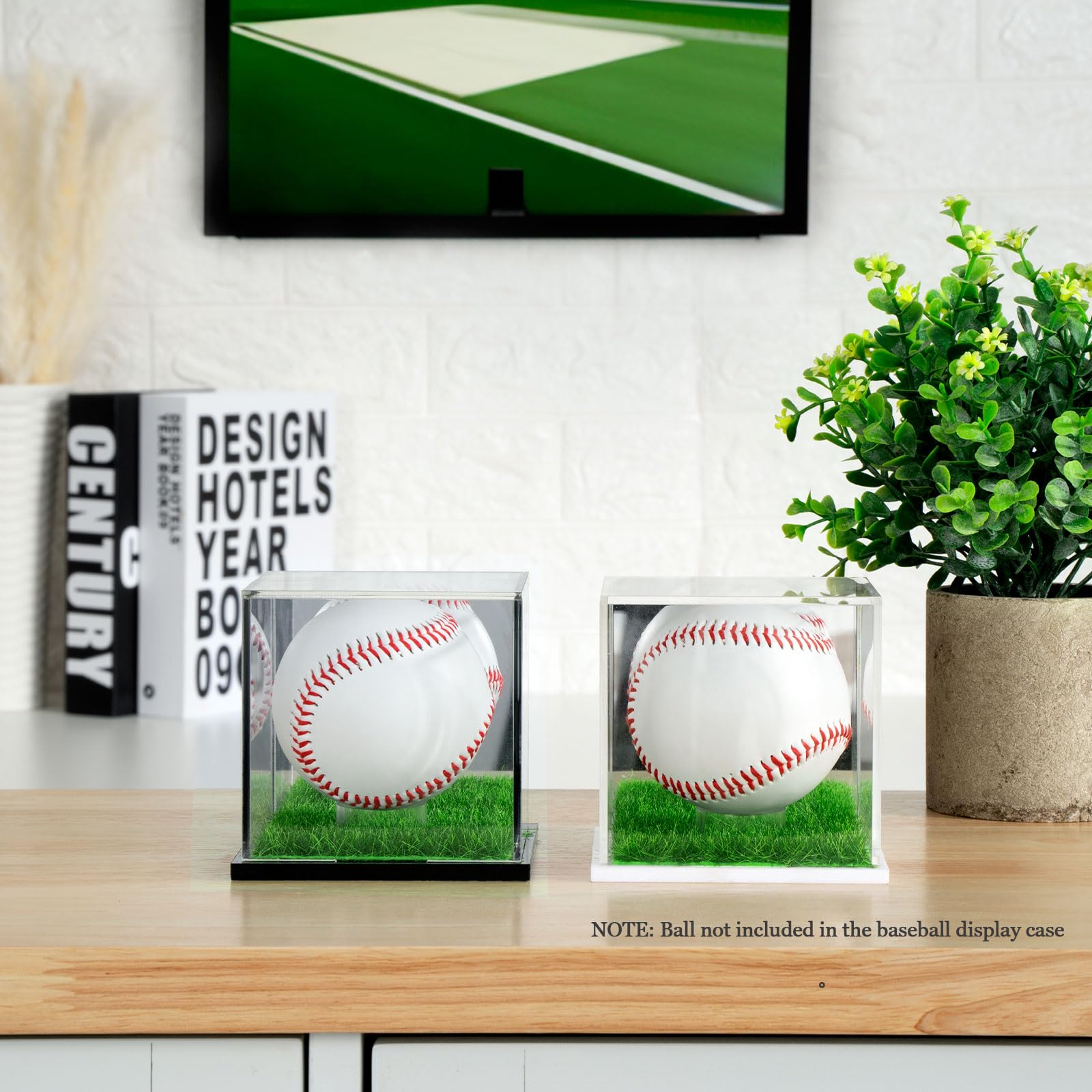 Acrylic Baseball Display Case, UV Protected Clear Display Box with Mirror and Turf Stand-Black(1PC)
