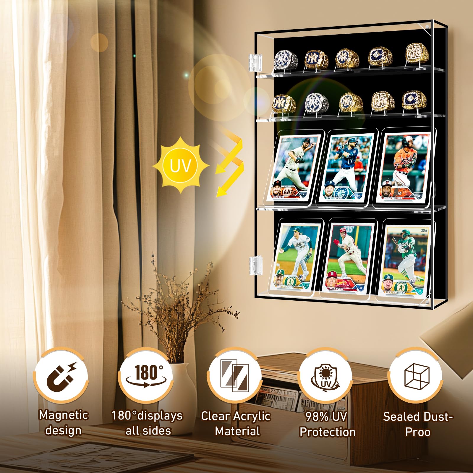 - ⭐【Premium Material and Easy Installation】 Made from high-quality acrylic, this durable display case is lightweight and sturdy. It features an easy-to-assemble design, making setup quick and hassle-free for any card or ring collector