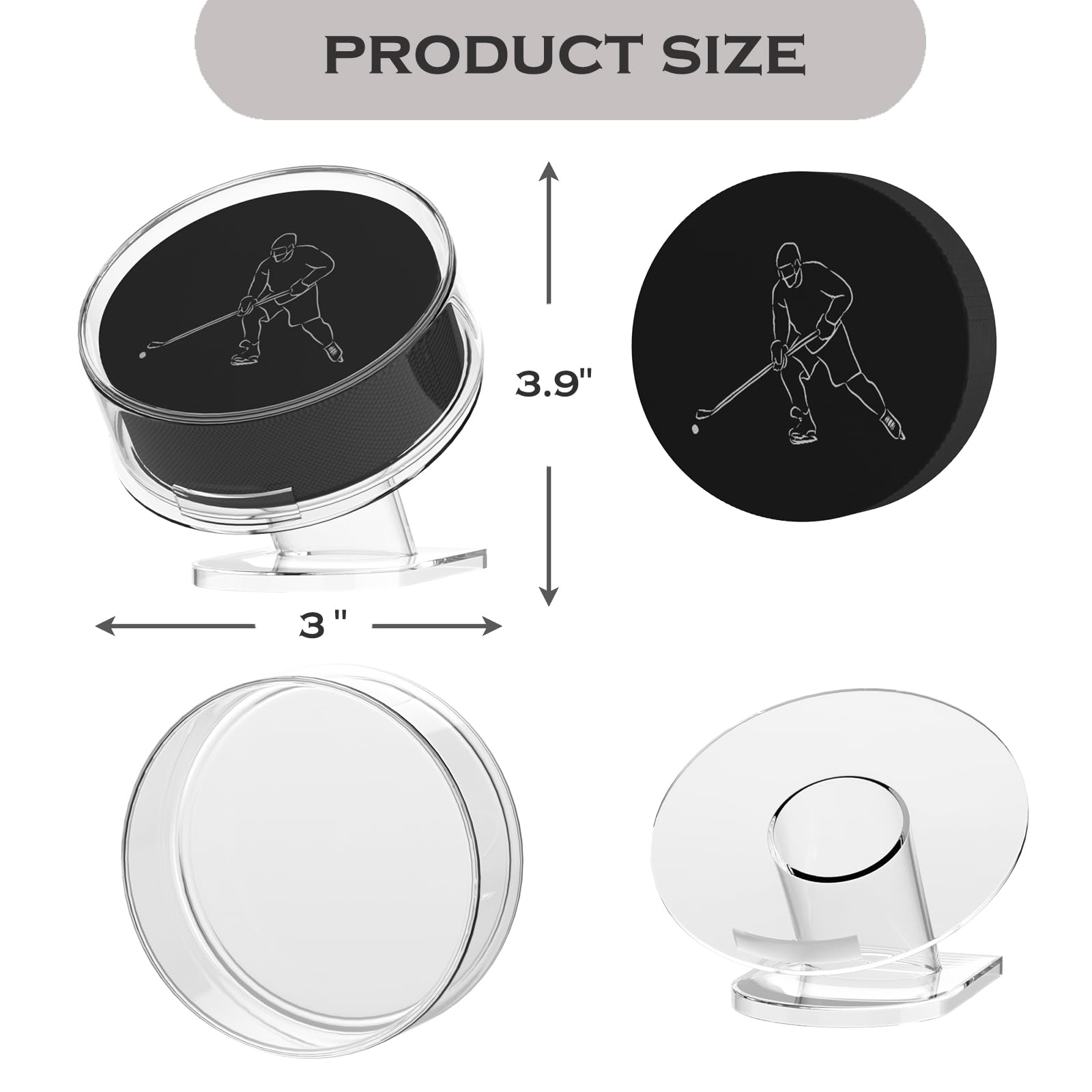 - 🟠Ideal Size for Use: Hockey puck holder is about 3.54" in total height, clear display box Diameter 3.3", Thickness 1.3",which is portable and personalized, perfect for puck display; it does not take up much space and does not easily block other decorations