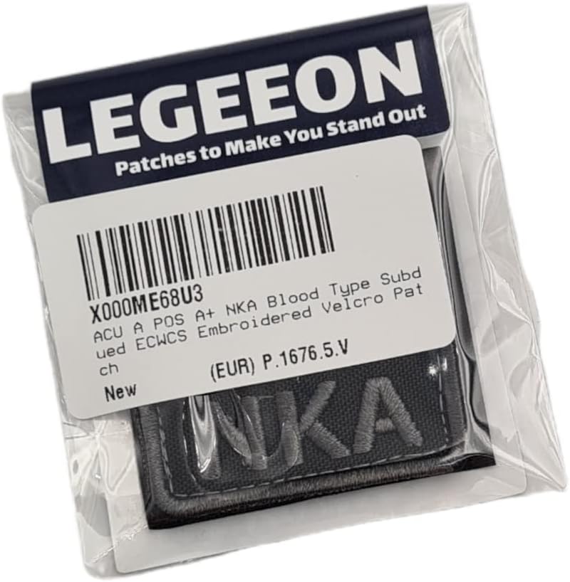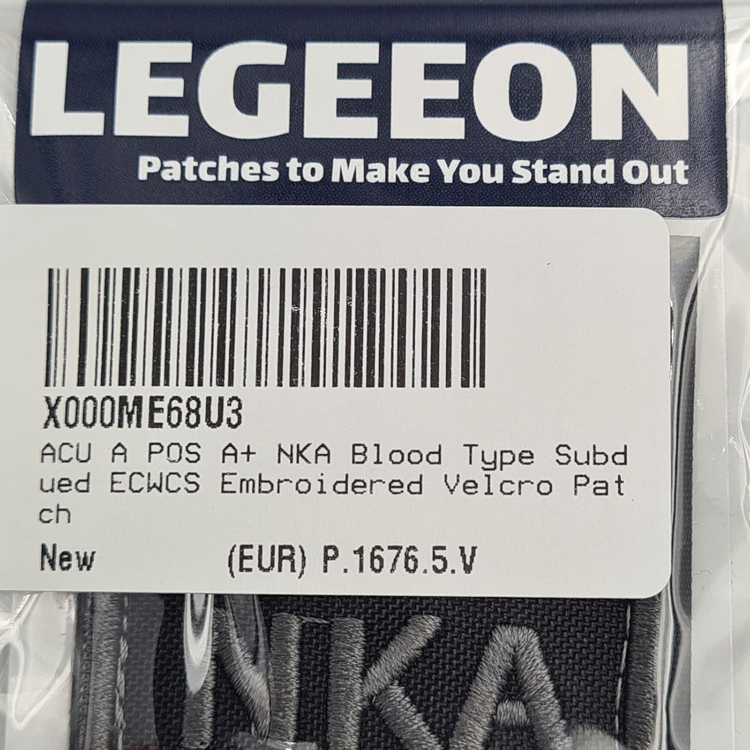 ACU A POS A+ NKA Blood Type Subdued ECWCS Embroidered Touch Fastener Patch