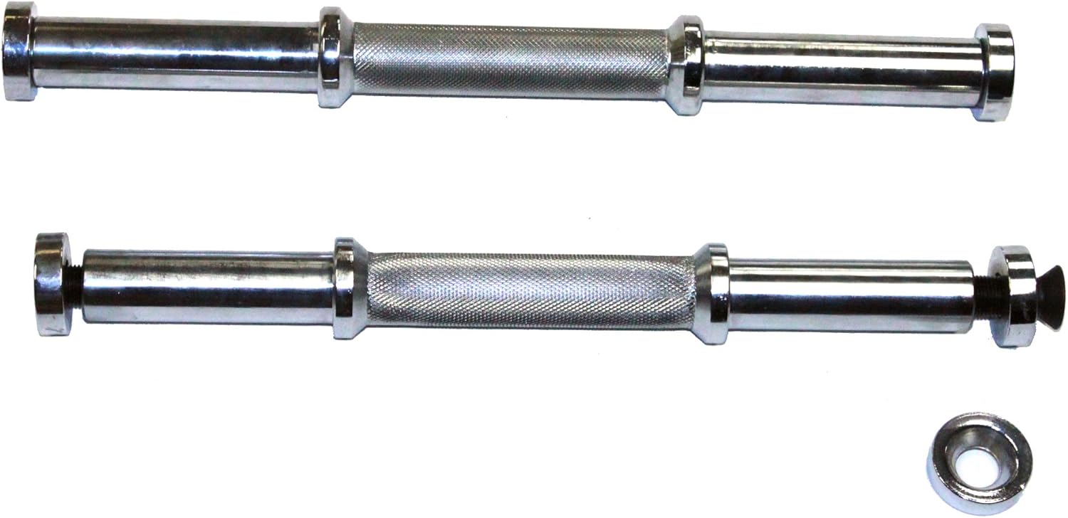 Diameter 1.0625", 1045 Cold roll steel. Triple chrome plated, for pancake style 2.5, 5, 7.5, 10 Lbs plates. Picture for reference only, length varies by capacity. Ship out 2-7 days.