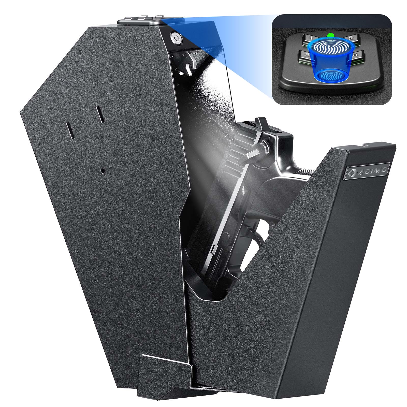 ADIMO Gun Safe for Handgun, Biometric Pistol Safe Fingerprint Quick Access Drop Down Single Mount Gun Safe with Keypad Lock and Key Lock, for Nightstand Wall Mount Bedside Desk Vehicle Bed