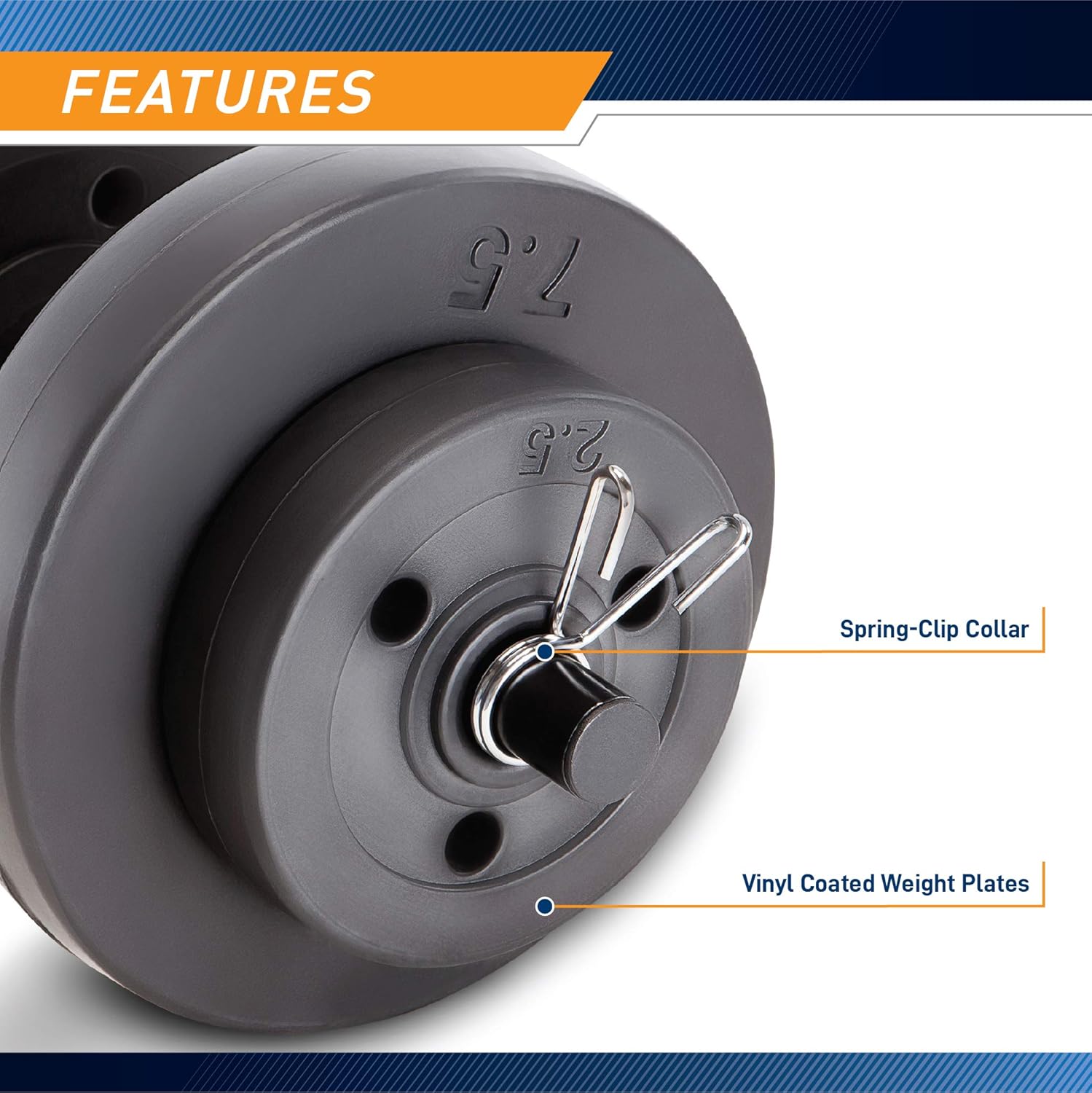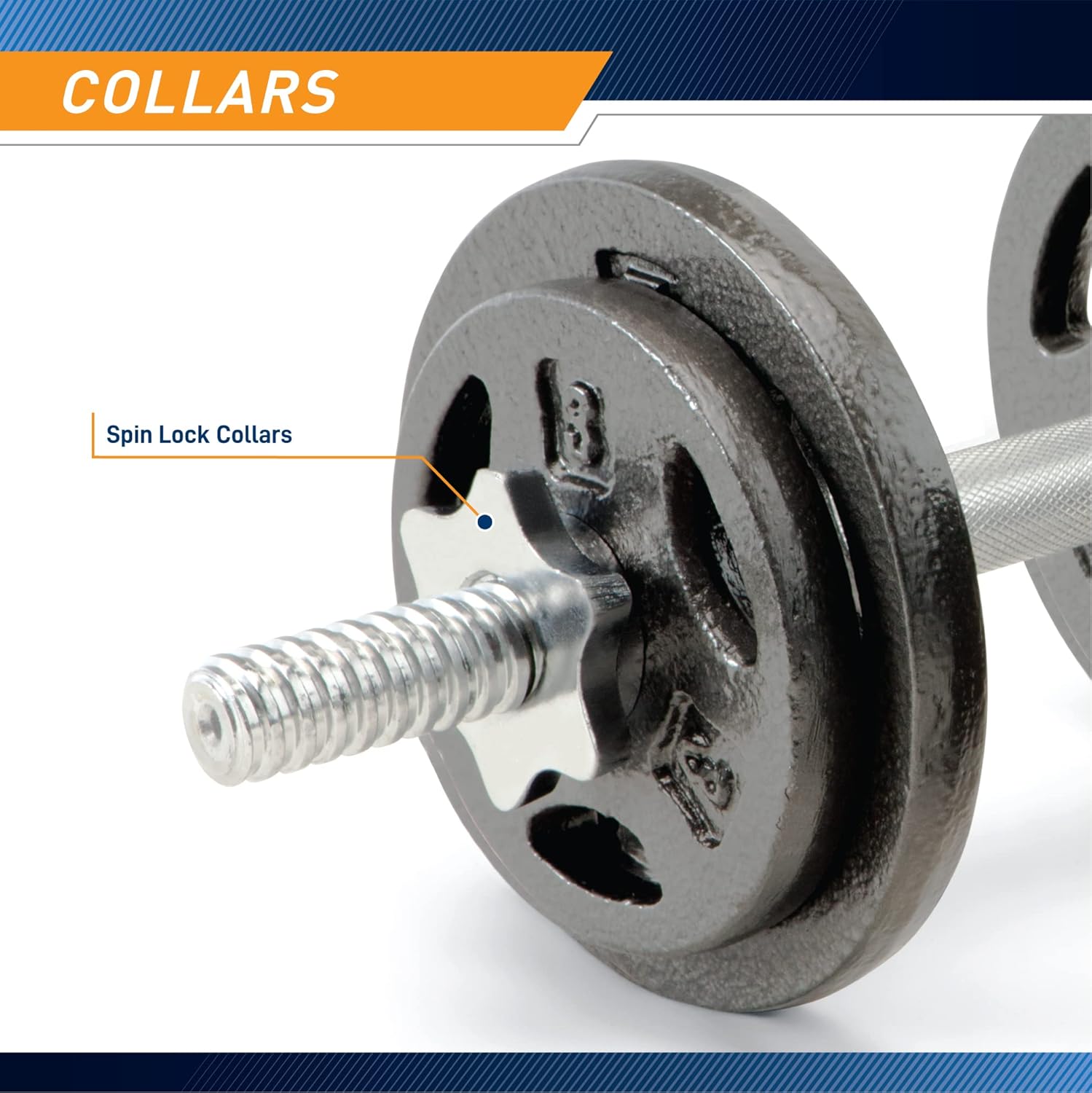 - SPIN LOCK COLLARS – Forget about moving and unstable plates when training. This dumbbell weight set comes with two spin locks that attach firmly to the end of the bar to secure the weights and prevent them from shifting when you perform exercises