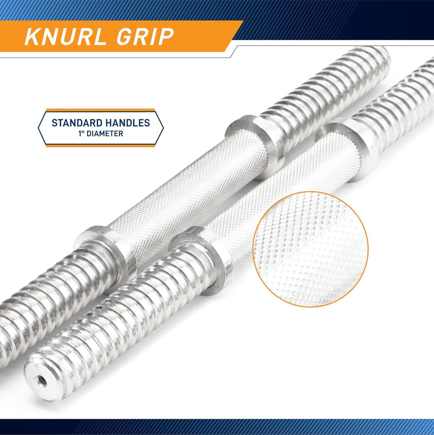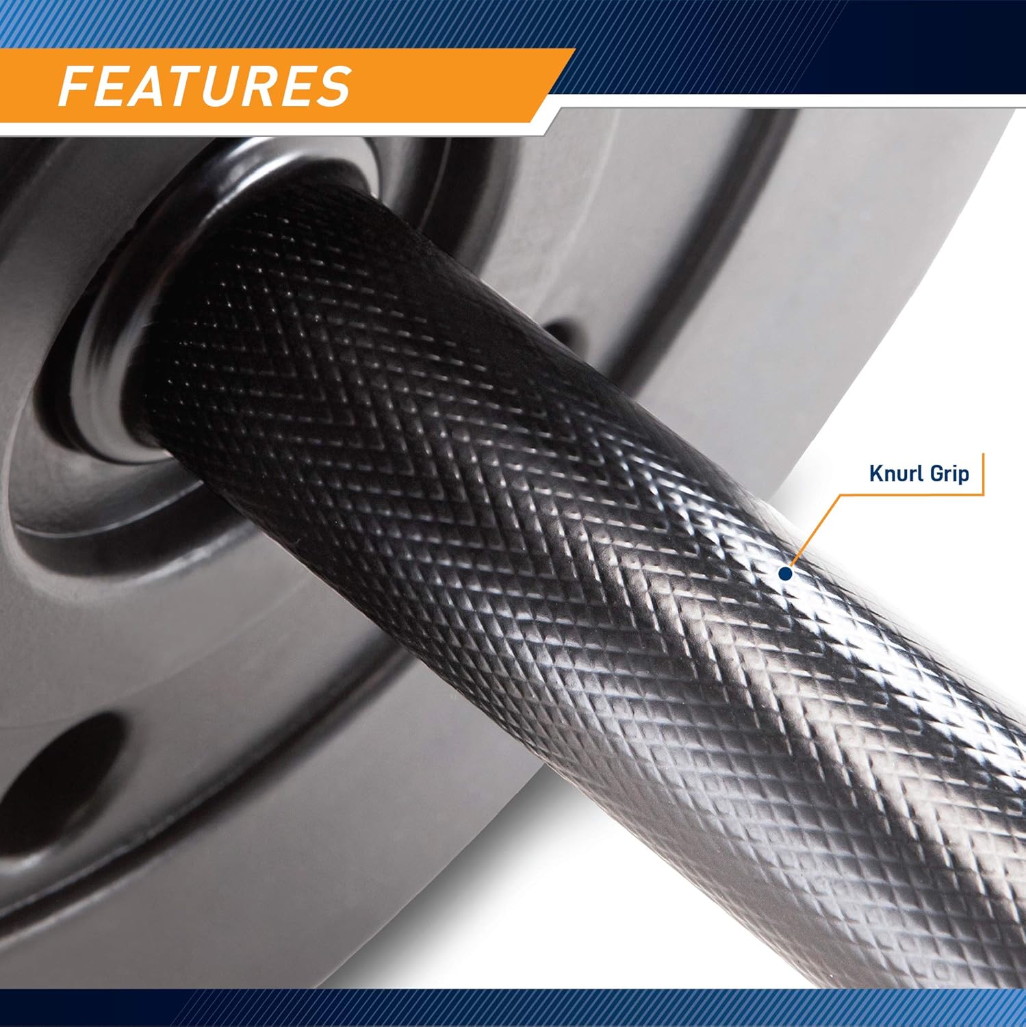 - KNURLED BAR FOR IMPROVED GRIP – This workout weight set features a knurled hand grip that’s designed to enhance your hold during lifting. The textured bar facilitates precise contact of your hand on the bar for a superior grasp