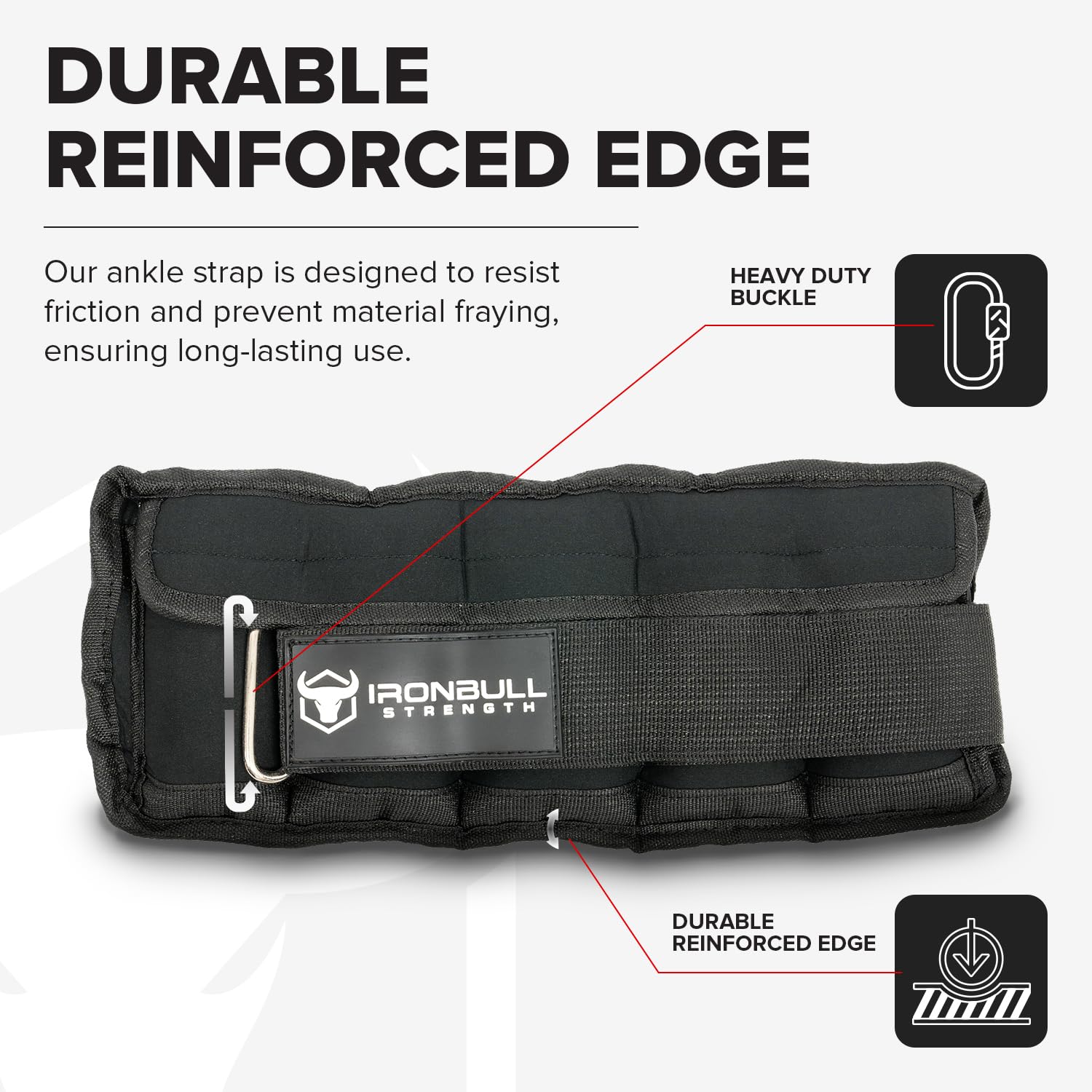 - STURDY NETAL LOOP: The uniquely engineered D-ring is built to endure pulling forces and impacts, securely holding the strap in position and effectively preventing the ankle weights from slipping down, regardless of the exercise.