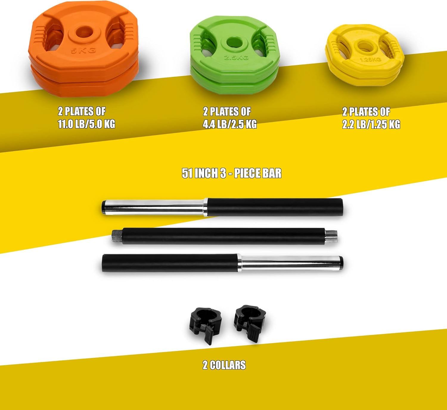 - MAKE WORKING OUT MORE FUN - Add some color to your workouts with this Cardio Pump Set. The rubber-coated rubber plates are easy to interchange, letting you vary the weight and adding some fun to your routine.