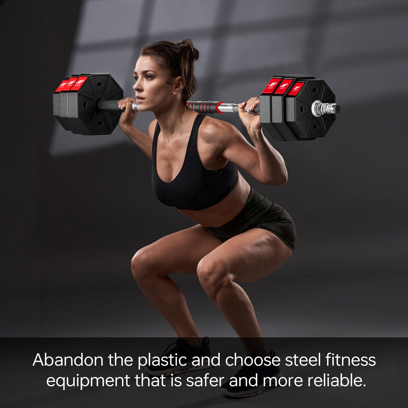 - Helps easily turn two dumbbell sets into one barbell, providing variety to your workout routine.