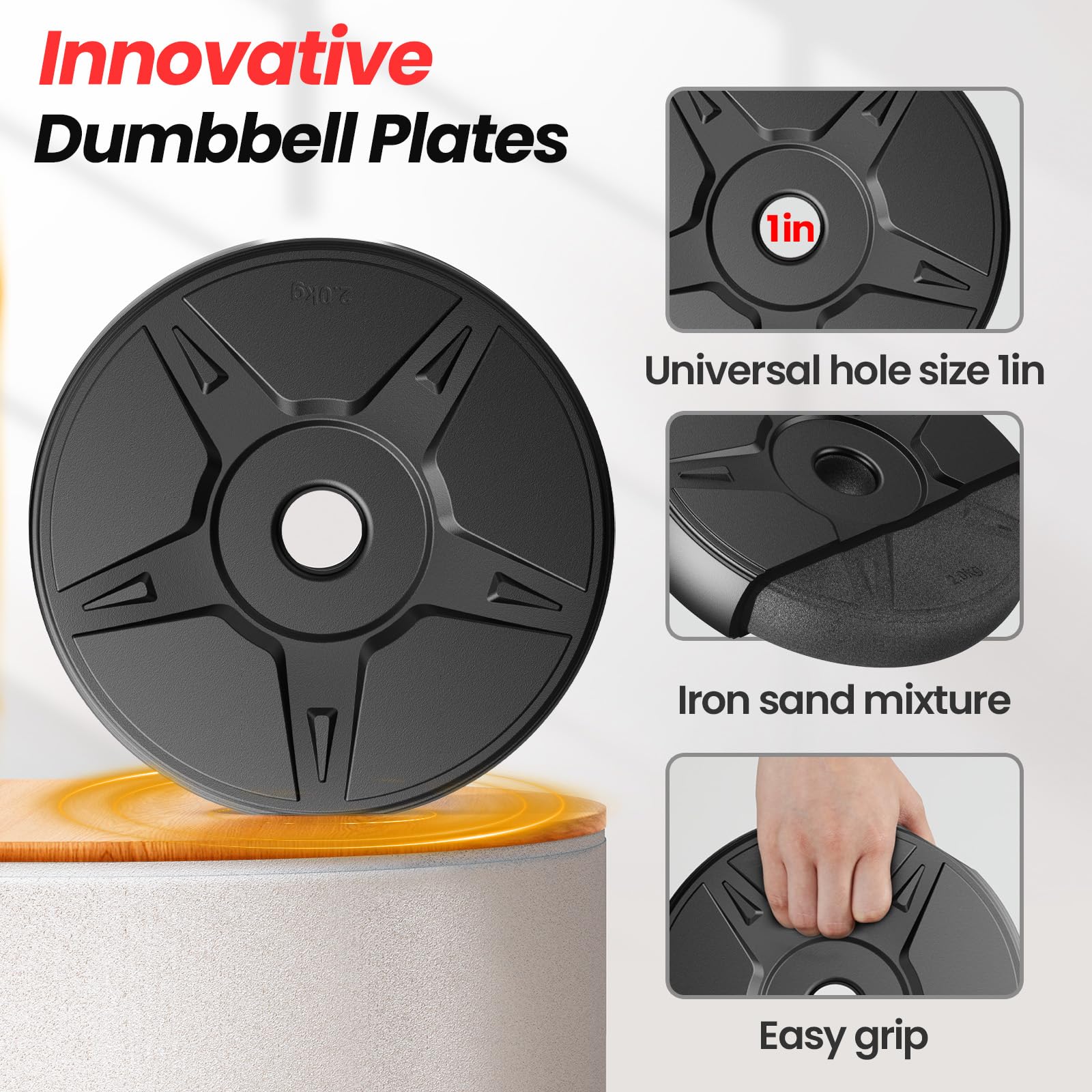 Adjustable dumbbell set, 55lbs Free Weights set with upgraded nut, 4 in 1 Weight Set Used as Kettlebells, Barbell, Push up Stand, Fitness Exercise for Home Gym Suitable Men/Women