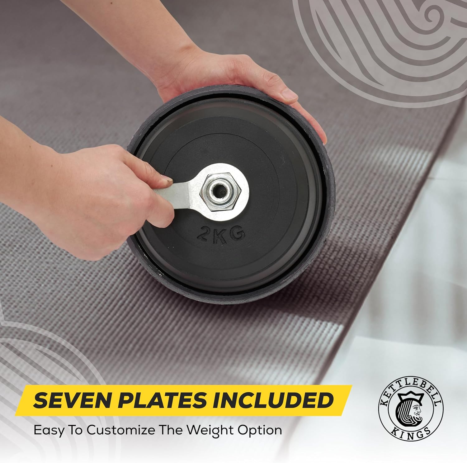 - Includes 7 Plates for Flexible Training: Adjust in 2.2 lb increments (except 28.6-68.3 lb) using the screw-lock system; this kettle bell set is ideal for beginners and experienced lifters alike