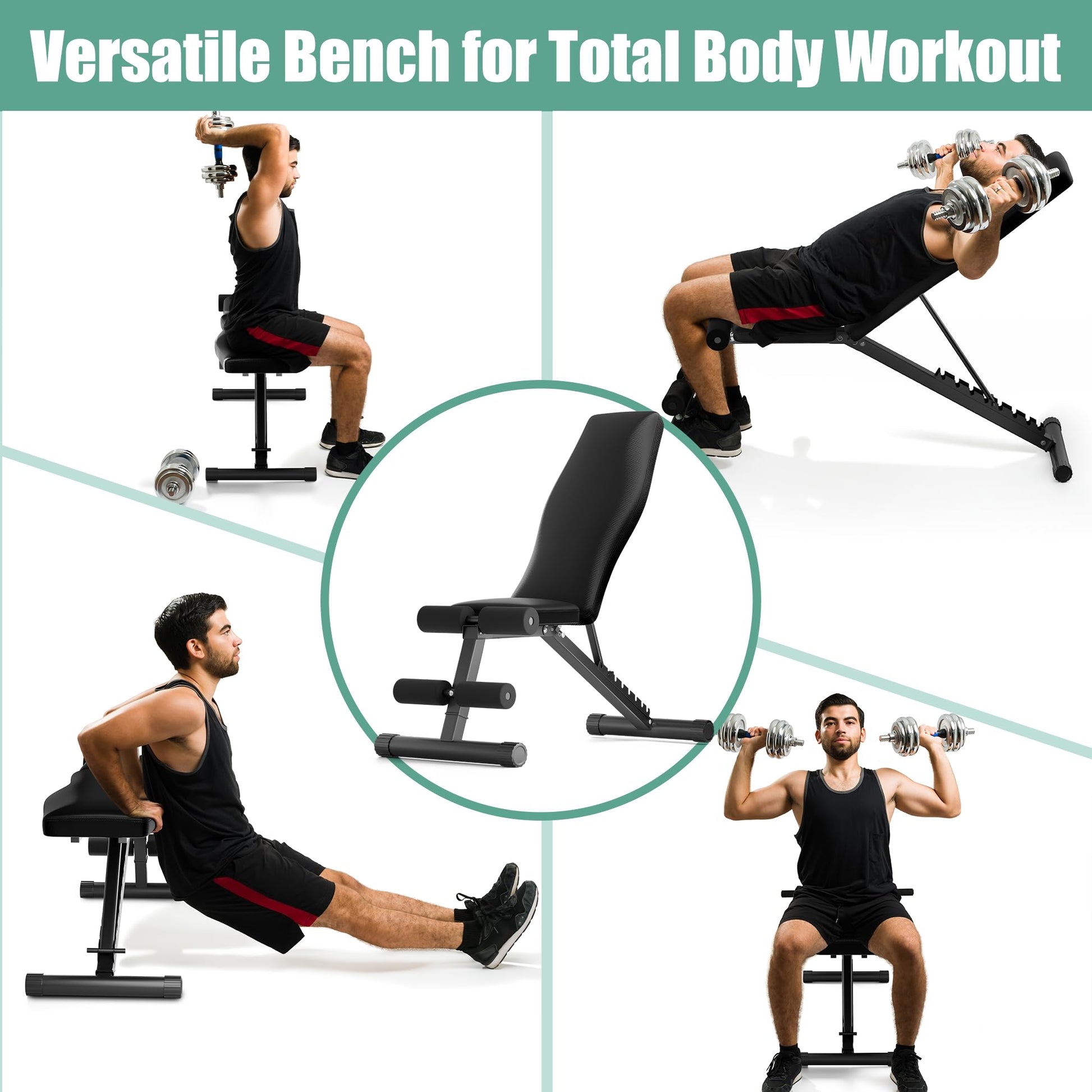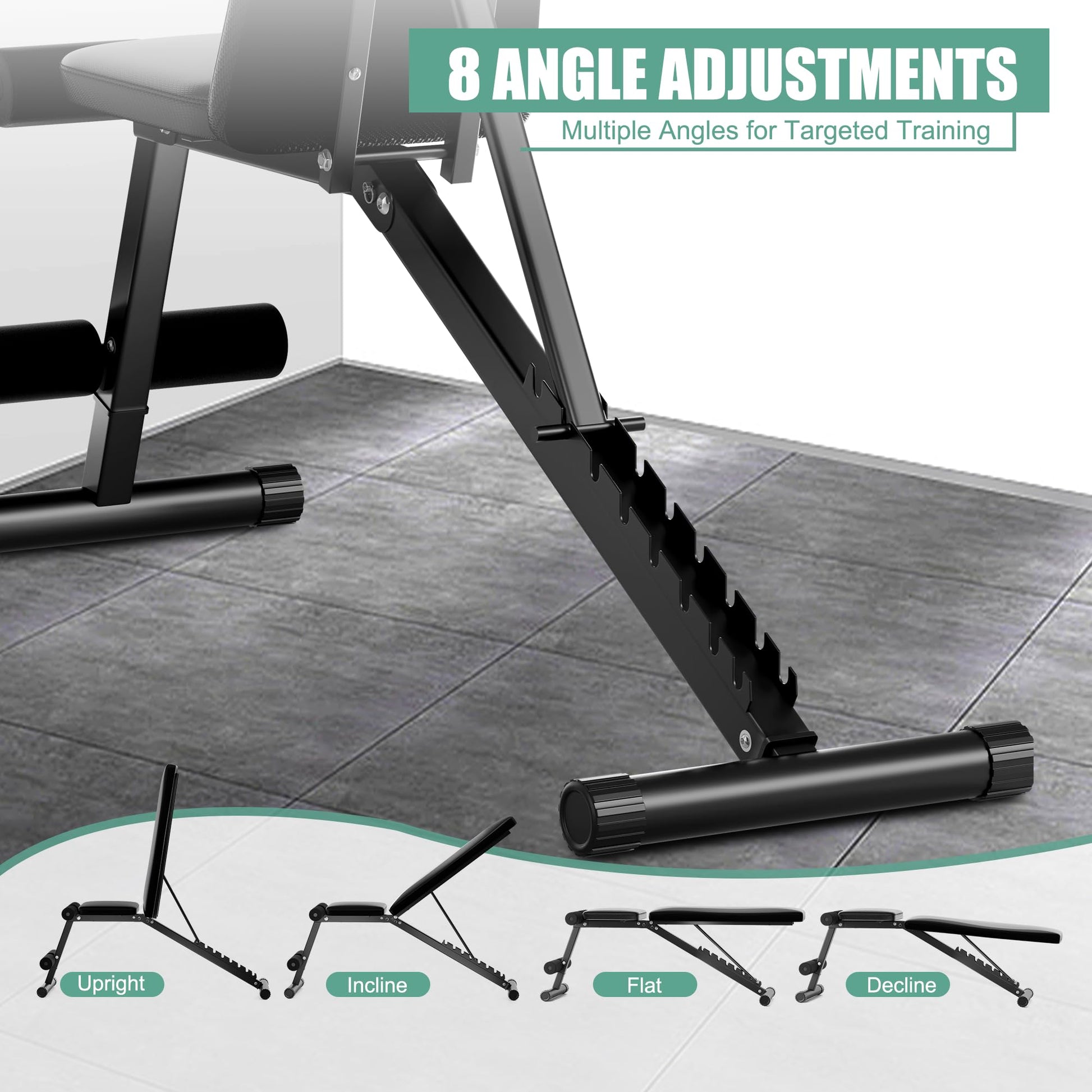 Details: This adjustable weight bench combines stability, versatility, and convenience, making it an essential addition to any home gym. Built with a solid steel frame, it supports up to 700 lbs, ensuring safety during intense workouts. The 8-position adjustable backrest allows you to switch between incline, flat, and decline angles, effectively targeting different muscle groups. Its compact, space-efficient design is perfect for small spaces, and it's easy to assemble, making it ideal for beginners and seasoned fitness enthusiasts alike.