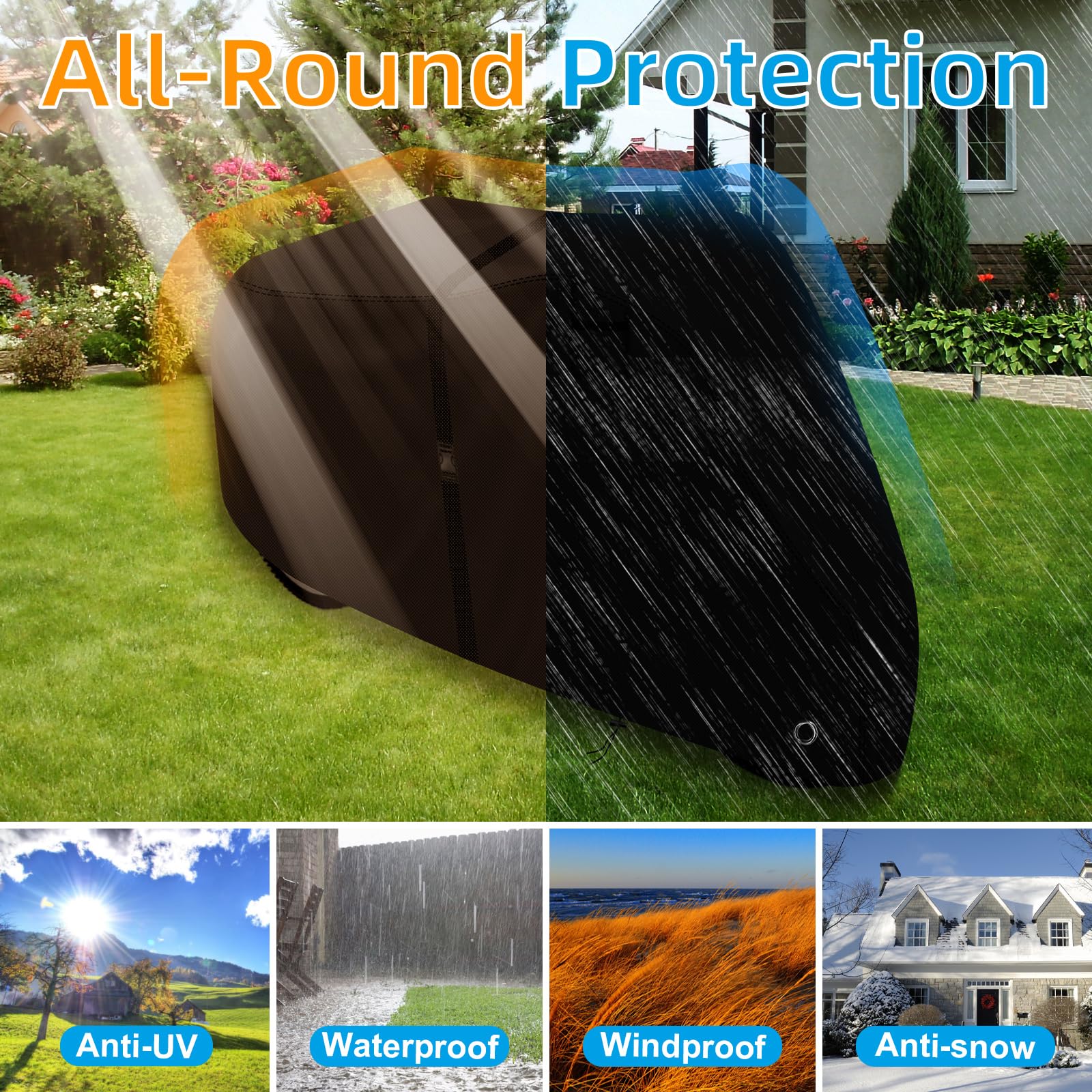- SUPERIOR WINDPROOF PROTECTION : Our three wheel bike covers for adults is designed with 2 portable handles make easy fitting and removal. Ideal air vents at two sides stay open to expel moisture from the interior, In addition, To keep your adult tricycle safe, clean and dry in any weather. Elastic hem cord allows adjustment for a tight custom fit, ensuring a snug fit and preventing the three wheel bike covers for adults from being blown away, even in strong winds and adverse weather conditions.