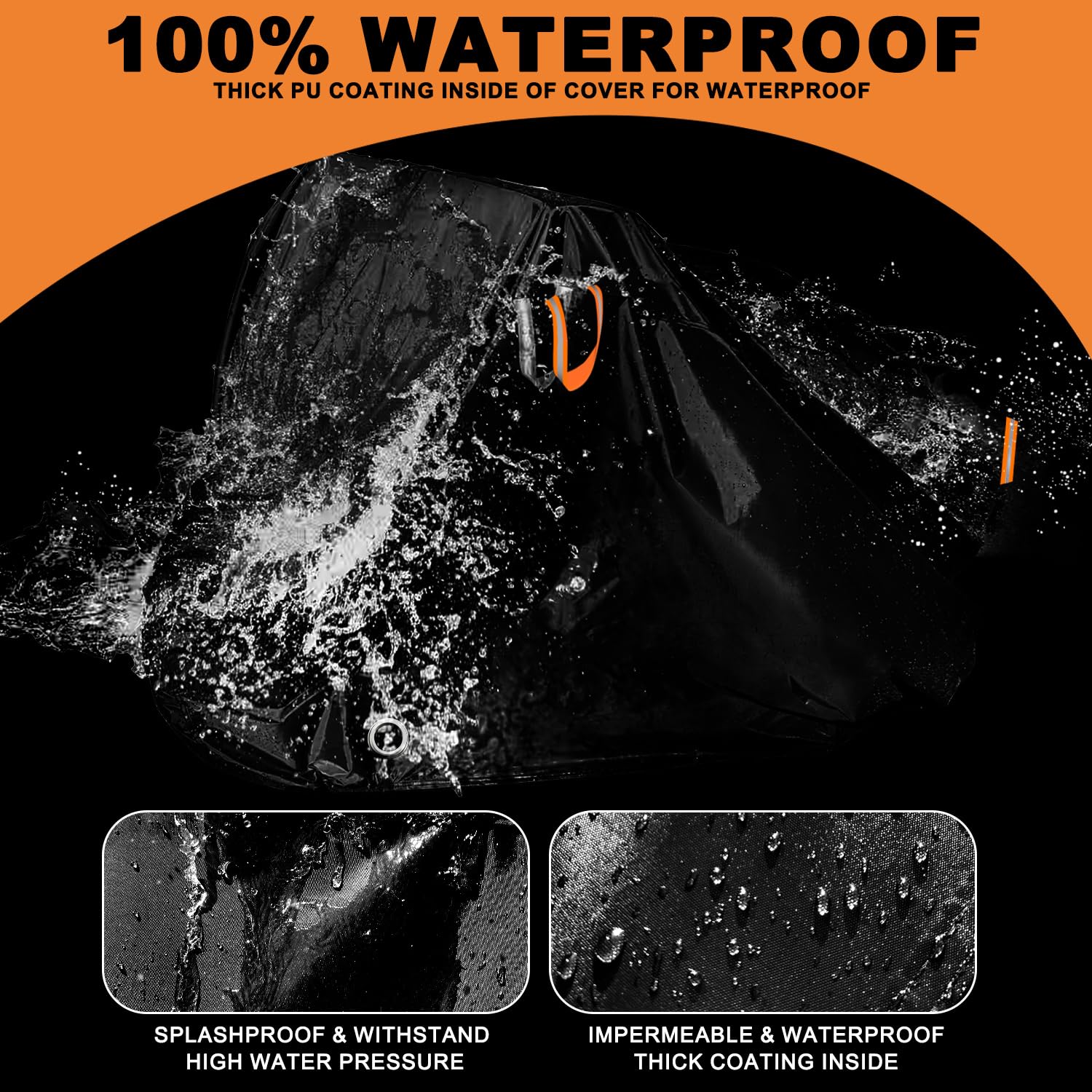 - Waterproof and Windproof: Water resistant designs:a thick silver waterproof coating inside,it can resist water and keep your tricycle dry.You can use it in bad weather,such as rain,snow…Windproof designs:There are adjustable windproof buckle straps on the middle bottom,and elastic band on both the front and back,to double make sure our cover is windproof,and wrap your bike tightly just like glove to hand.Our covers can protect your bike in extreme weather,such as typhoons,rainstorms,hail,or exposure