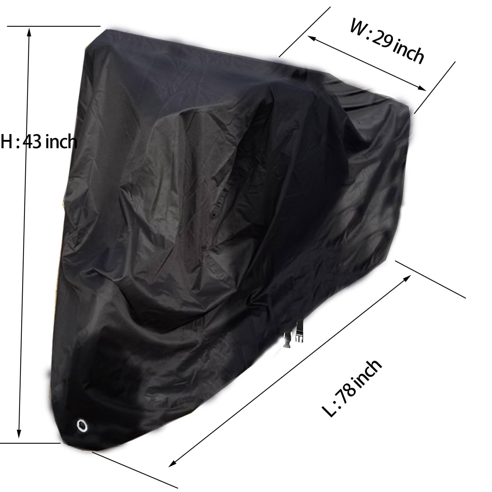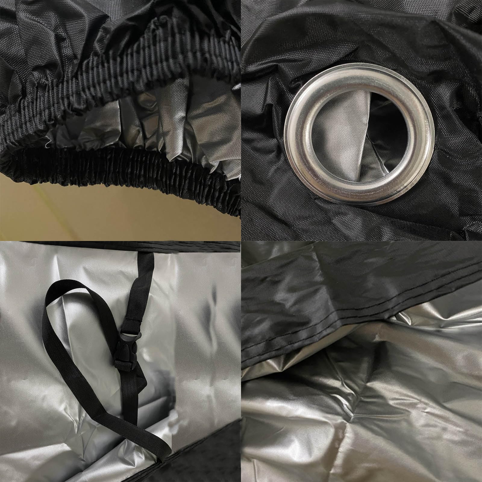 - [Windproof design]: Front lock holes, Middle fixed buckle which help lock your moto for better fix, and the windproof bandage prevents your Adult Tricycle cover being blown away in strong wind.