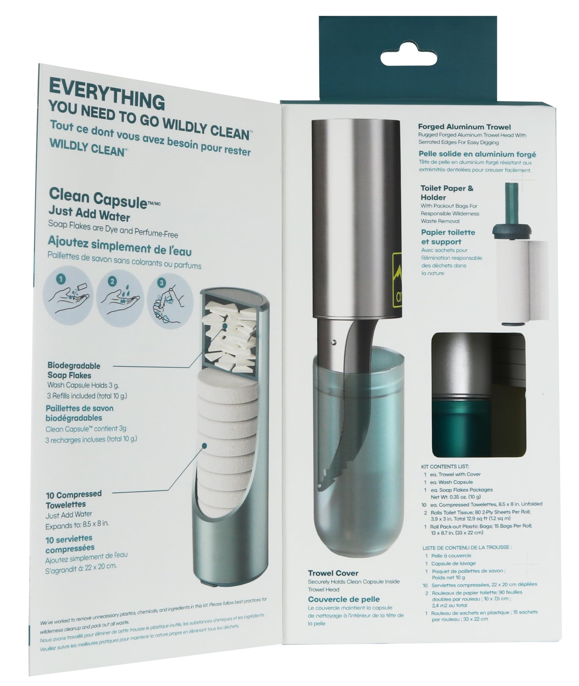 - All-in-One Outdoor Bathroom Kit - Answer the call of nature with this all-in-one bathroom kit with a backpacking trowel, toilet paper, pack out baggies, and our Clean Capsule for easy hand washing.