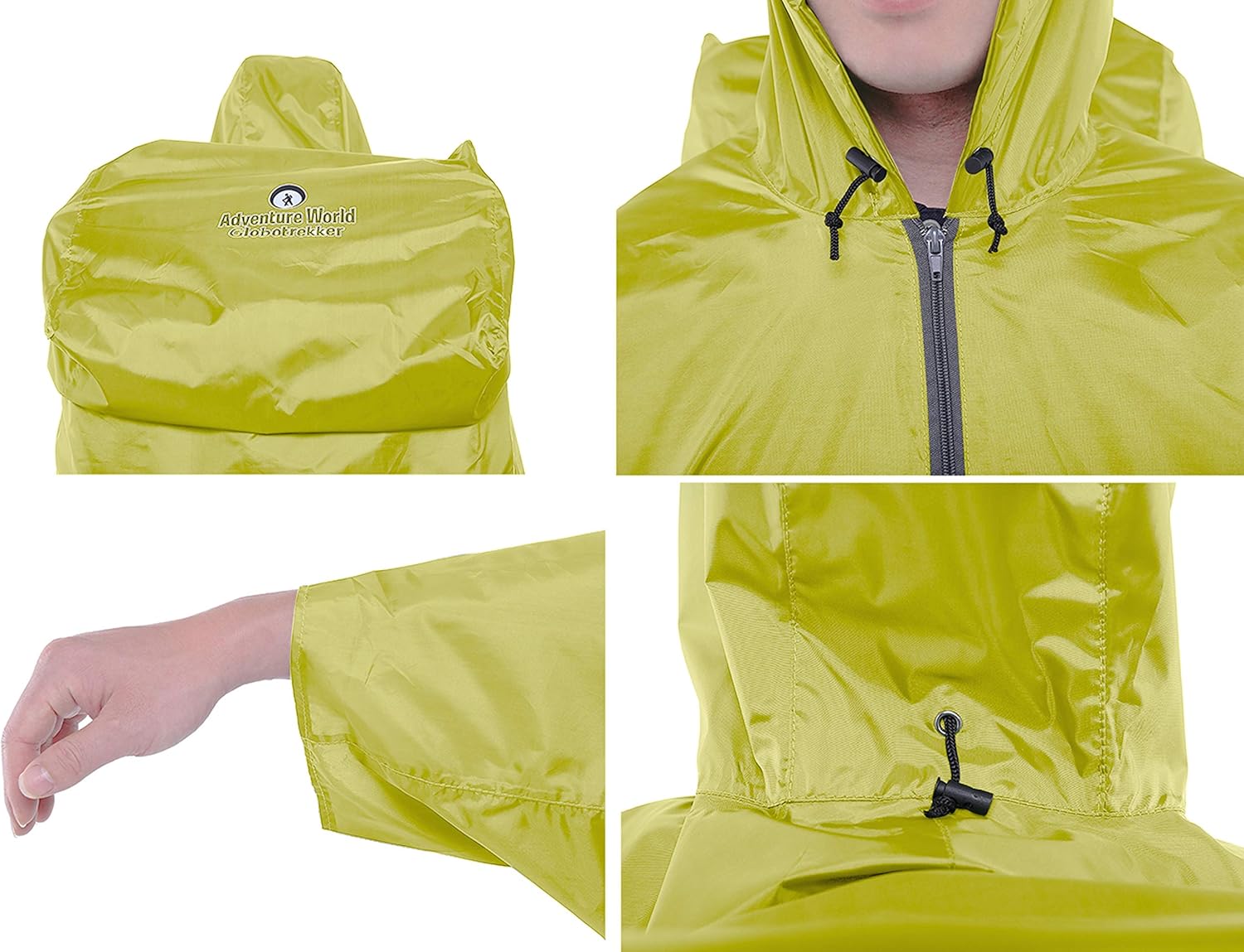 Adventure World Globotrekker Backpack Poncho Lightweight Waterproof Rain Poncho for Hiking, Camping, Travel & Outdoor Use