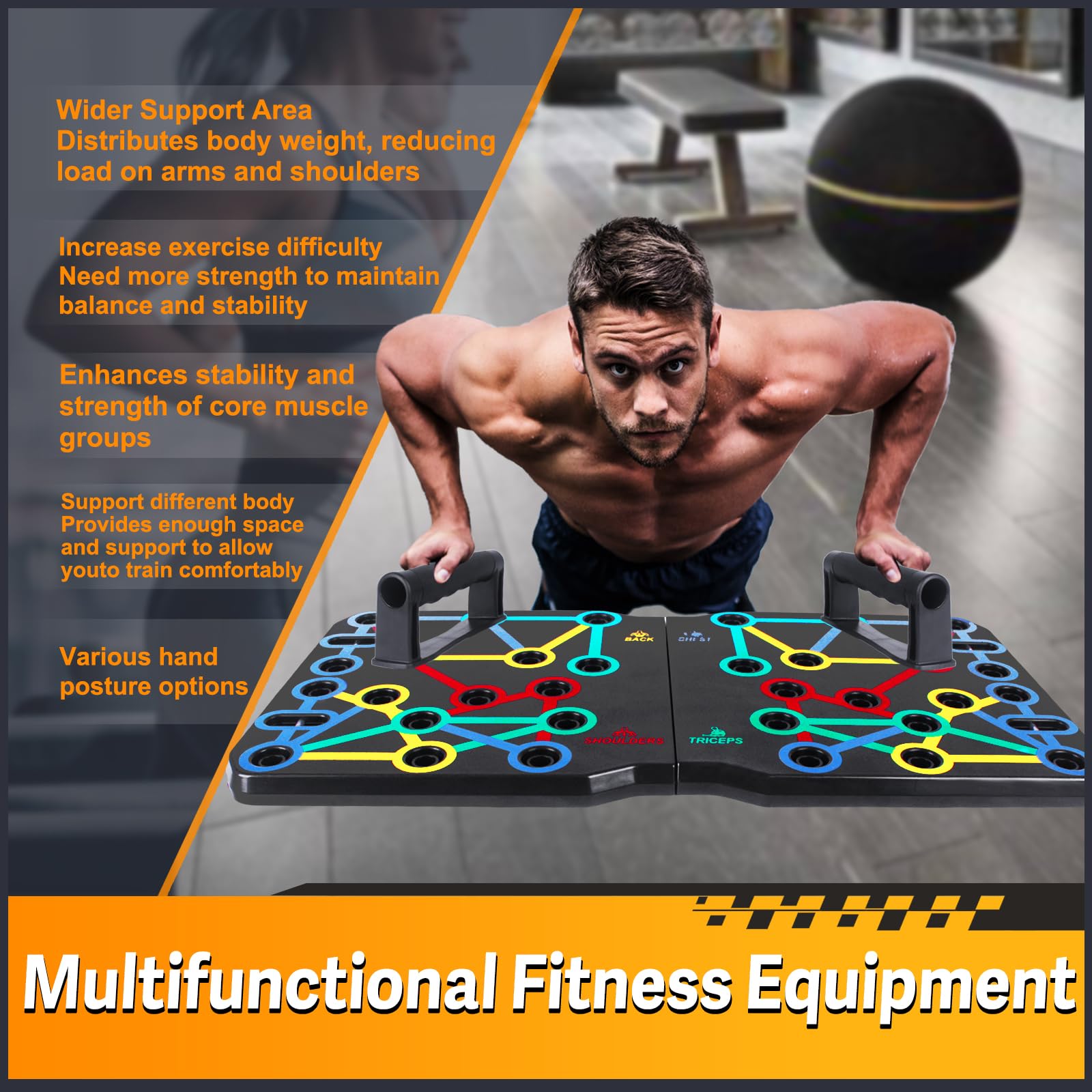 - 【30-in-2 Durable Push Up Board for Chest Workout】: This 30-in-2 pushup board is crafted from high-quality, non-slip ABS material, it offers 30 different combination positions and a color-coded system to target chest, triceps, shoulders, and back to help you fully exercise. Its ergonomic design ensures balanced force distribution, reducing wrist and elbow strain—making it ideal chest workout equipment for safer, more effective strength training at home.