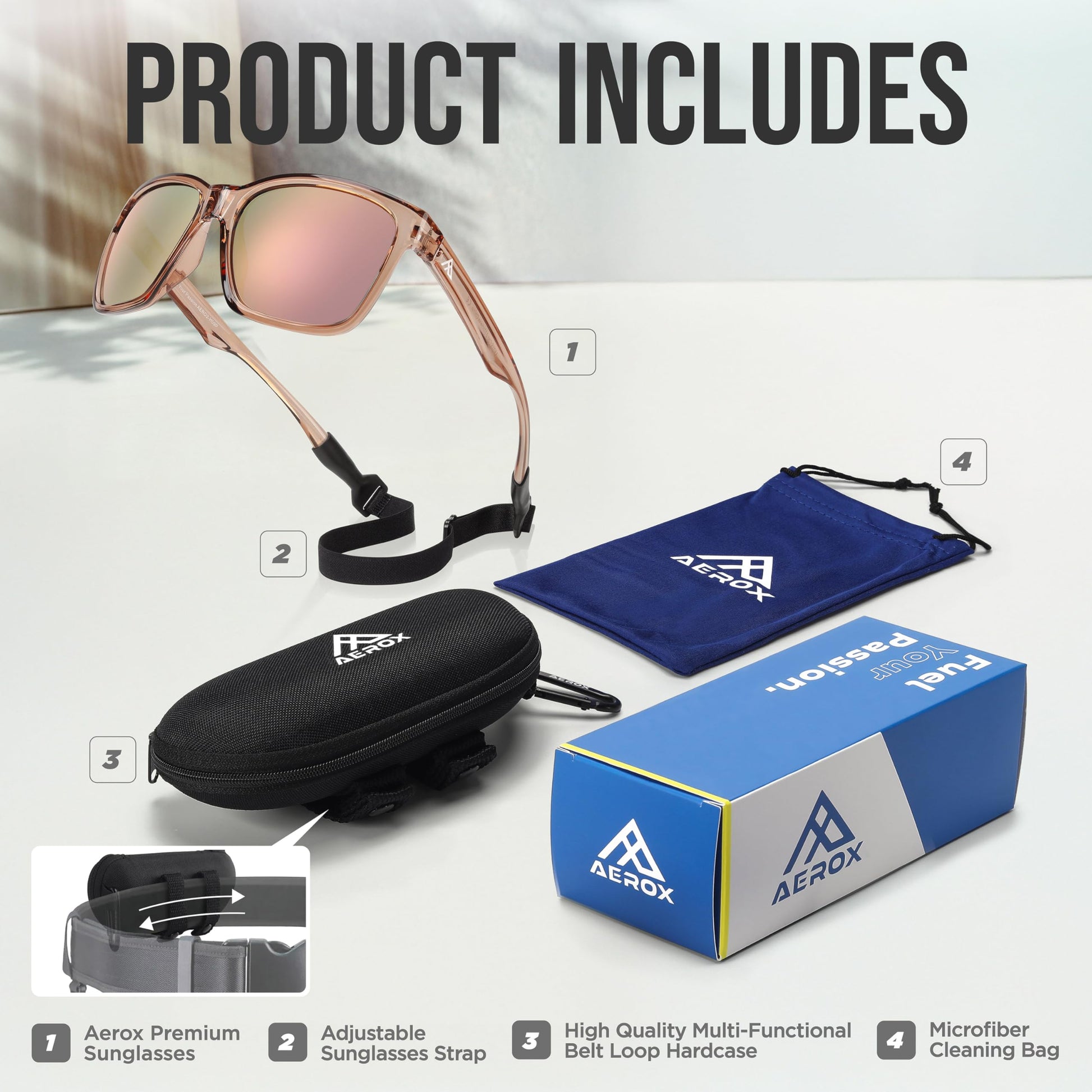 - ADVENTURE-READY BUNDLE: CASE & ACCESSORIES INCLUDED: AEROX sunglasses come with a premium hard-shell case, belt loop & clip, plus a carabiner & adjustable strap to keep them secure. Ideal for sports, travel, and daily commutes, ensuring your eyewear is always protected.