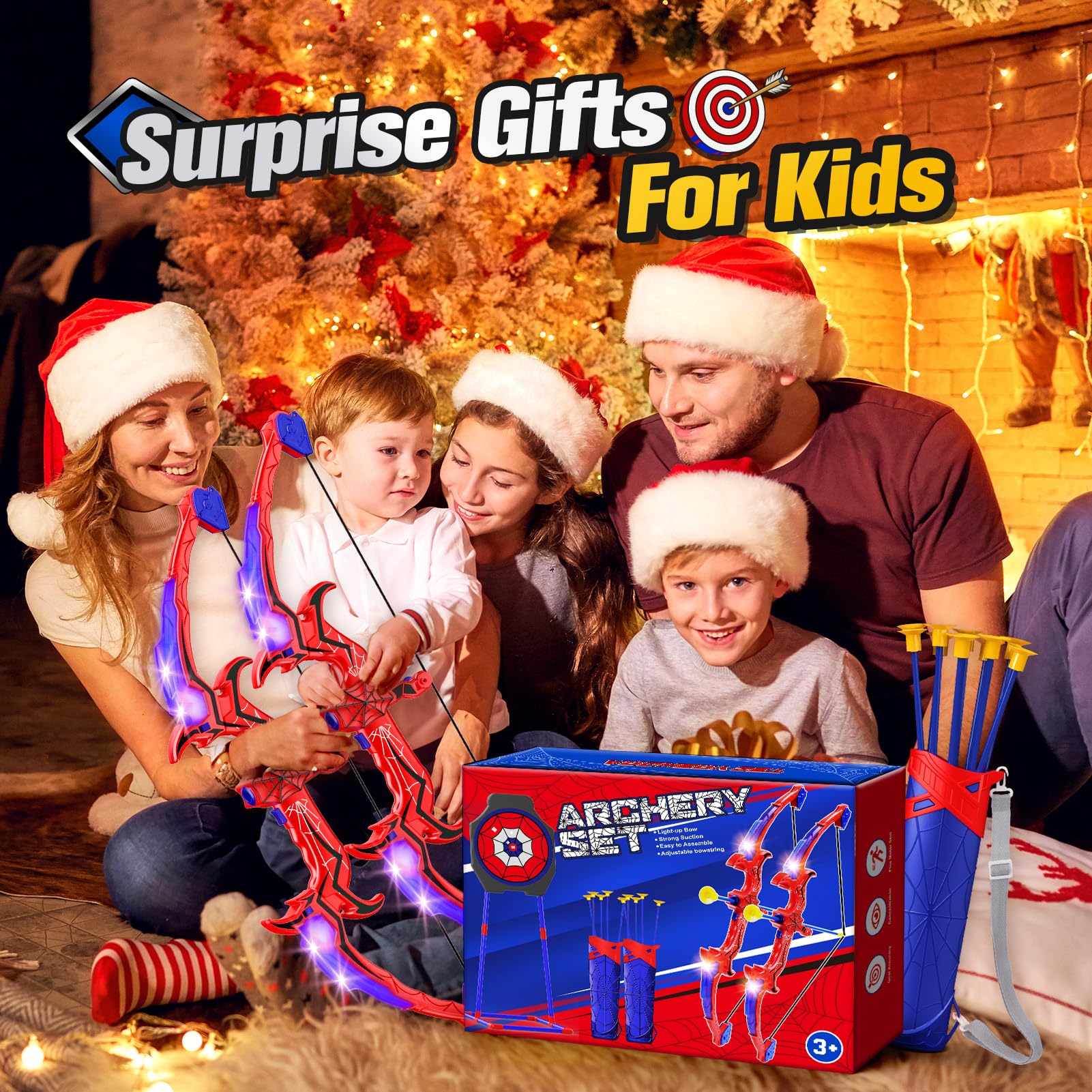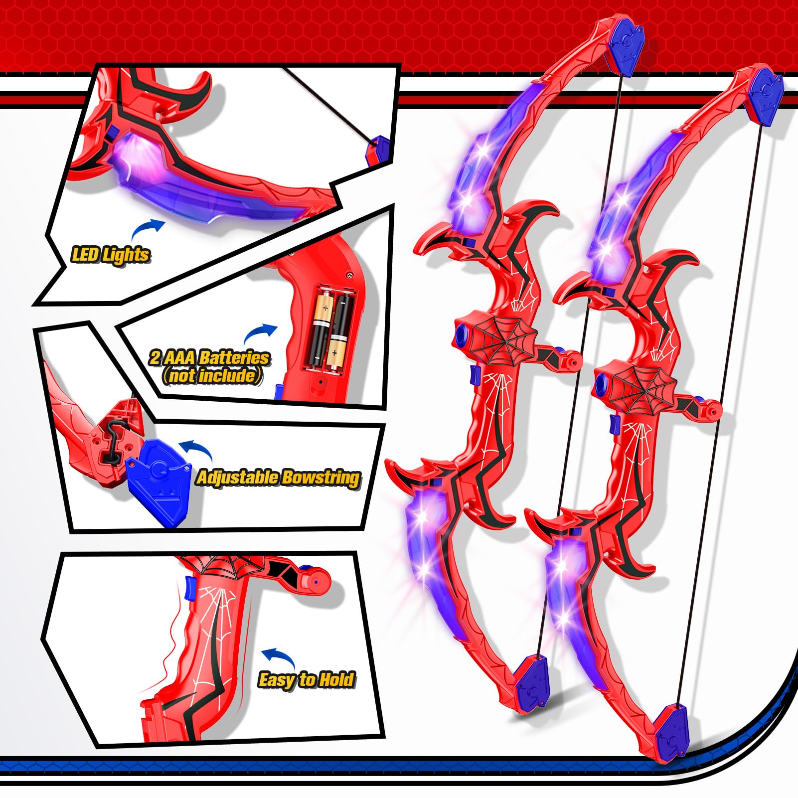 Aetyni Spider Bow and Arrow for Kids, 2 Pack Archery Target Outdoor Toys Age 5-7 8-13 Boys Toys Light Up Shooting Games for 4 5 6 7 8-12 Year old Boy Birthday Gifts Bow Arrow Indoor Cool Stuff for Kid