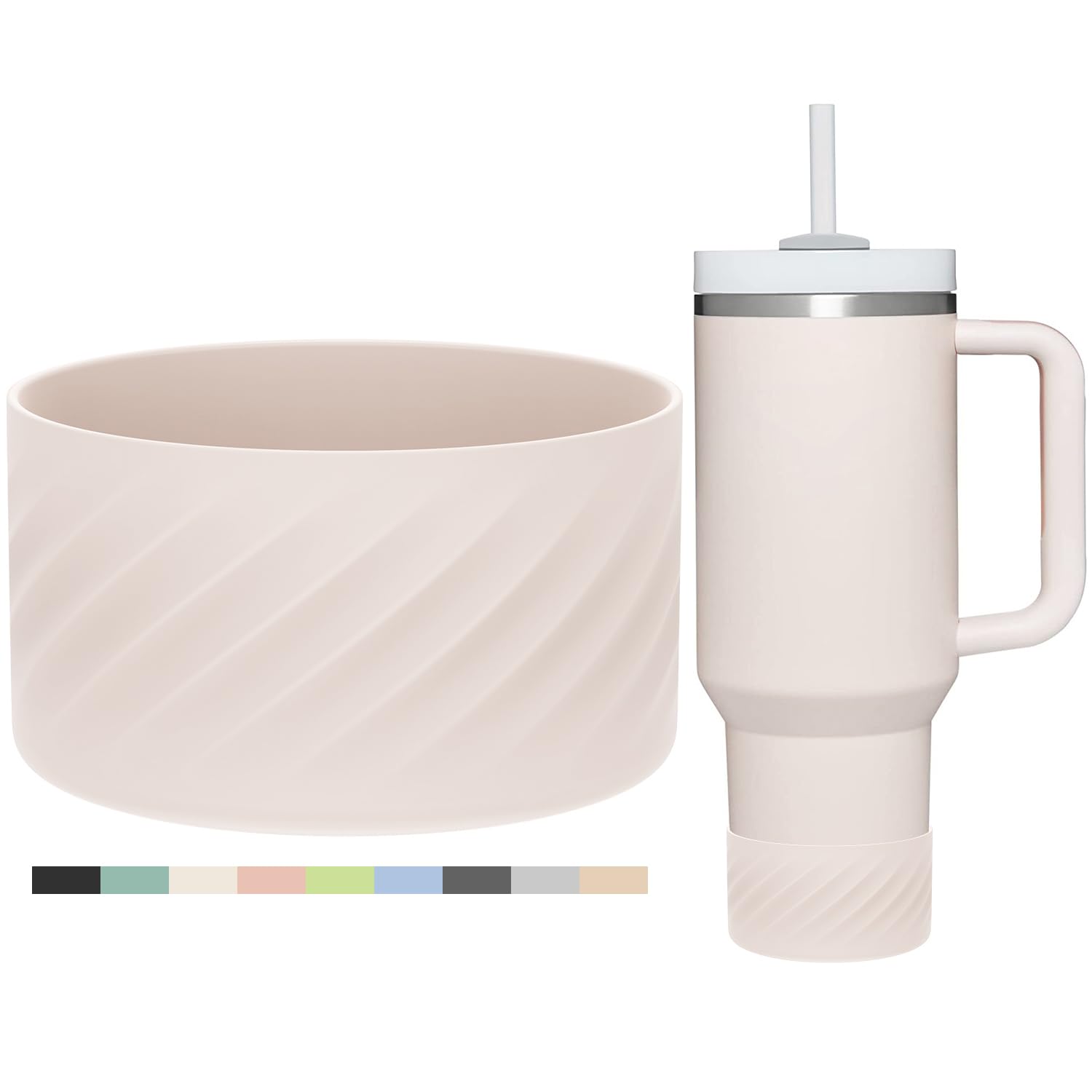 Affute Protective Silicone Boot for Stanley Quencher H2.0 40 oz & IceFlow Flip 20 oz 30 oz and hydroflask 12-24 oz, Anti-Slip Bottle Bottom Sleeve Cover (Rose Quartz)