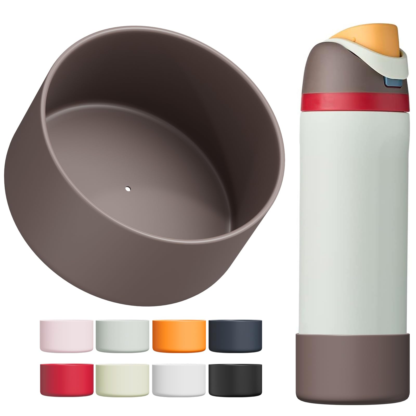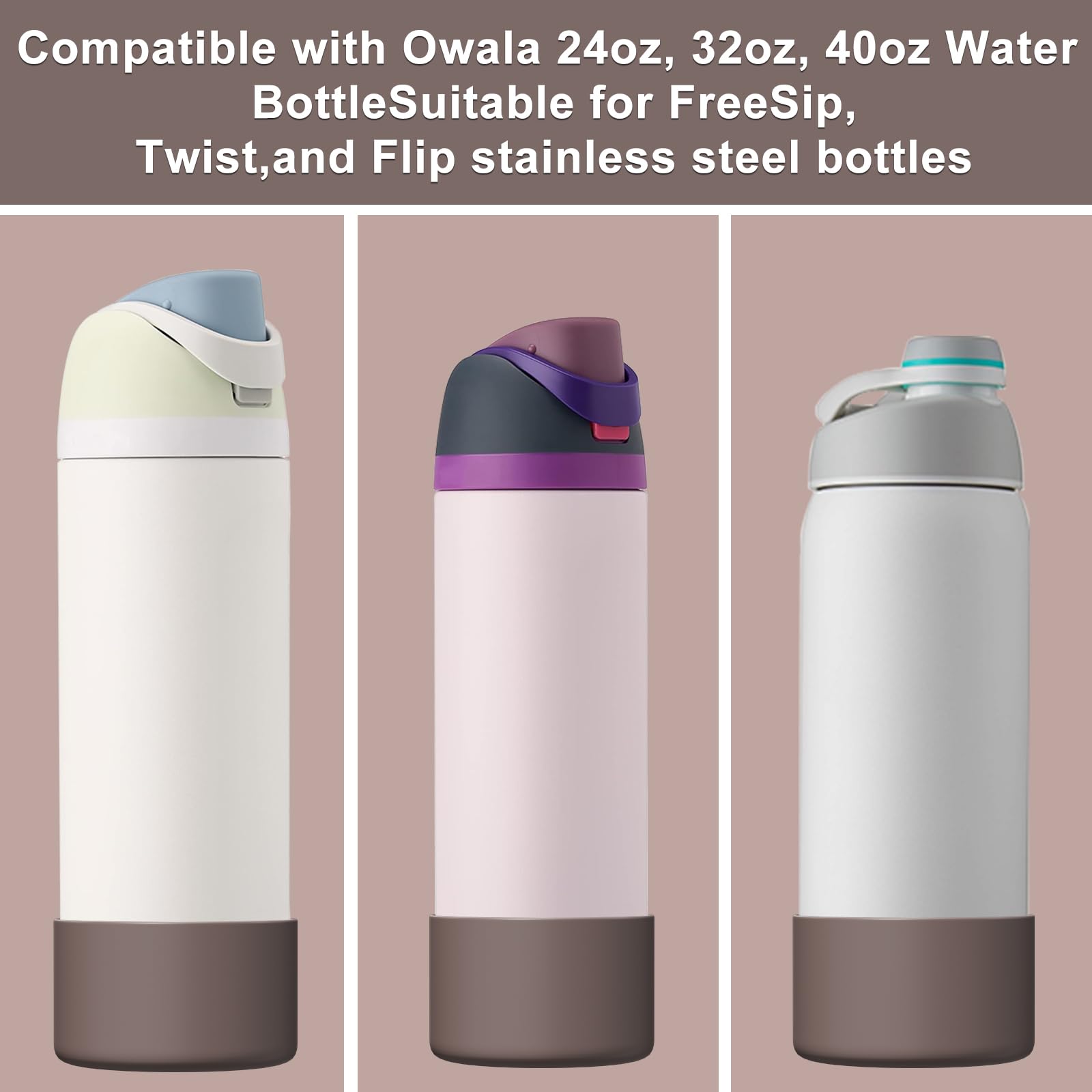Affute Silicone Boot for Owala Water Bottle 24 oz, Anti-Slip Protective Sleeve for FreeSip/Twist/Flip Water Bottles, BPA Free, Bottom Bumper Cover Protects Water Bottles from Scratches (Brown)