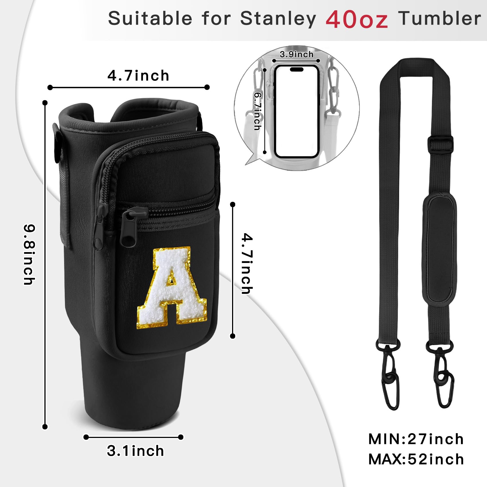 - đăFree Your HandsăVersatile accessory designed for your active and relaxed lifestyle. Phone pocket, card pocket, and durable carabiner clip make it easy to organize and store your phone, credit cards, cash, keys, etc. Unique initial letter water bottle carrier bag with strap for stanley 40 oz tumbler with handle. Whether you are traveling, exercising, running, cycling, hiking, camping, commuting, or attending a music festival, it can make your travels more free and convenient.