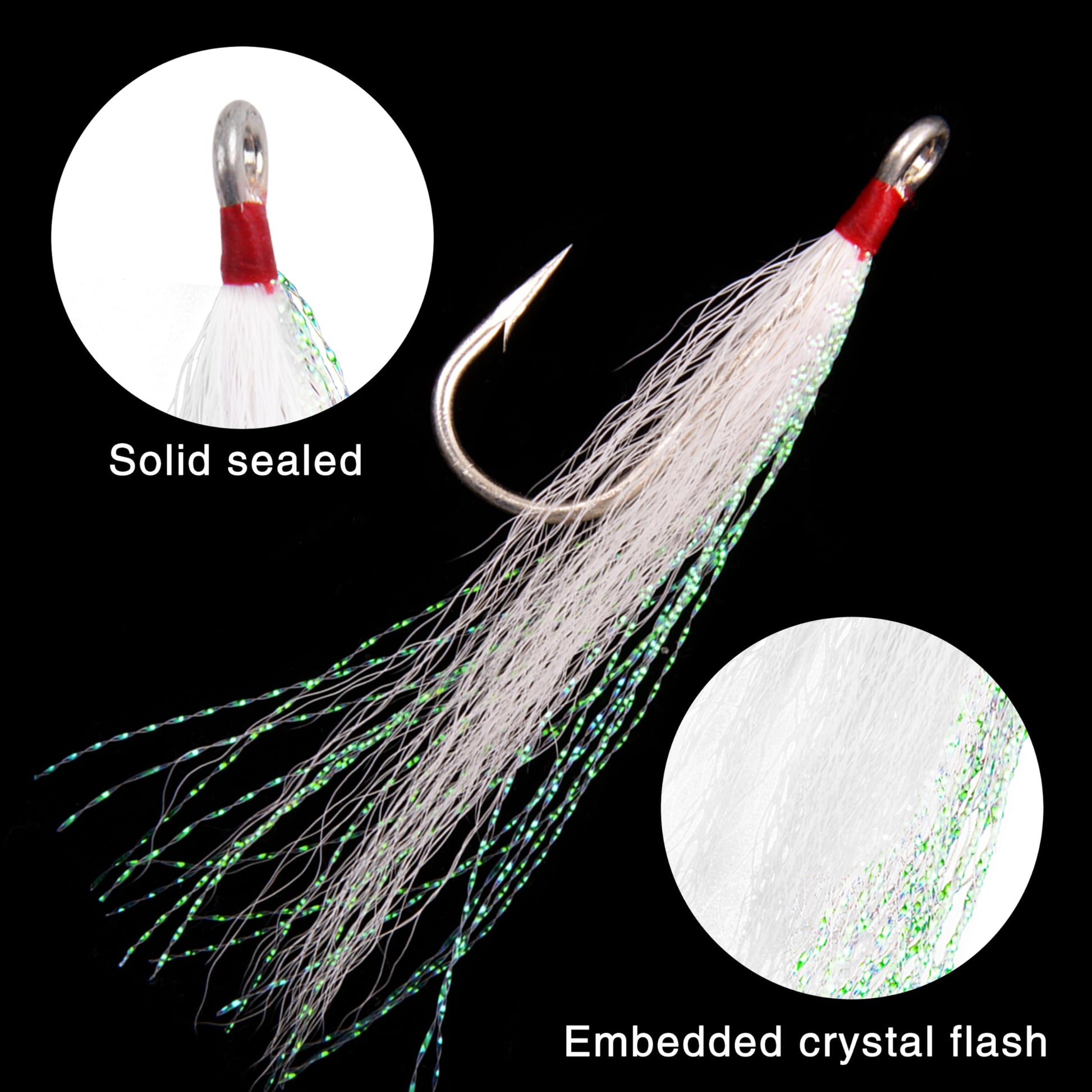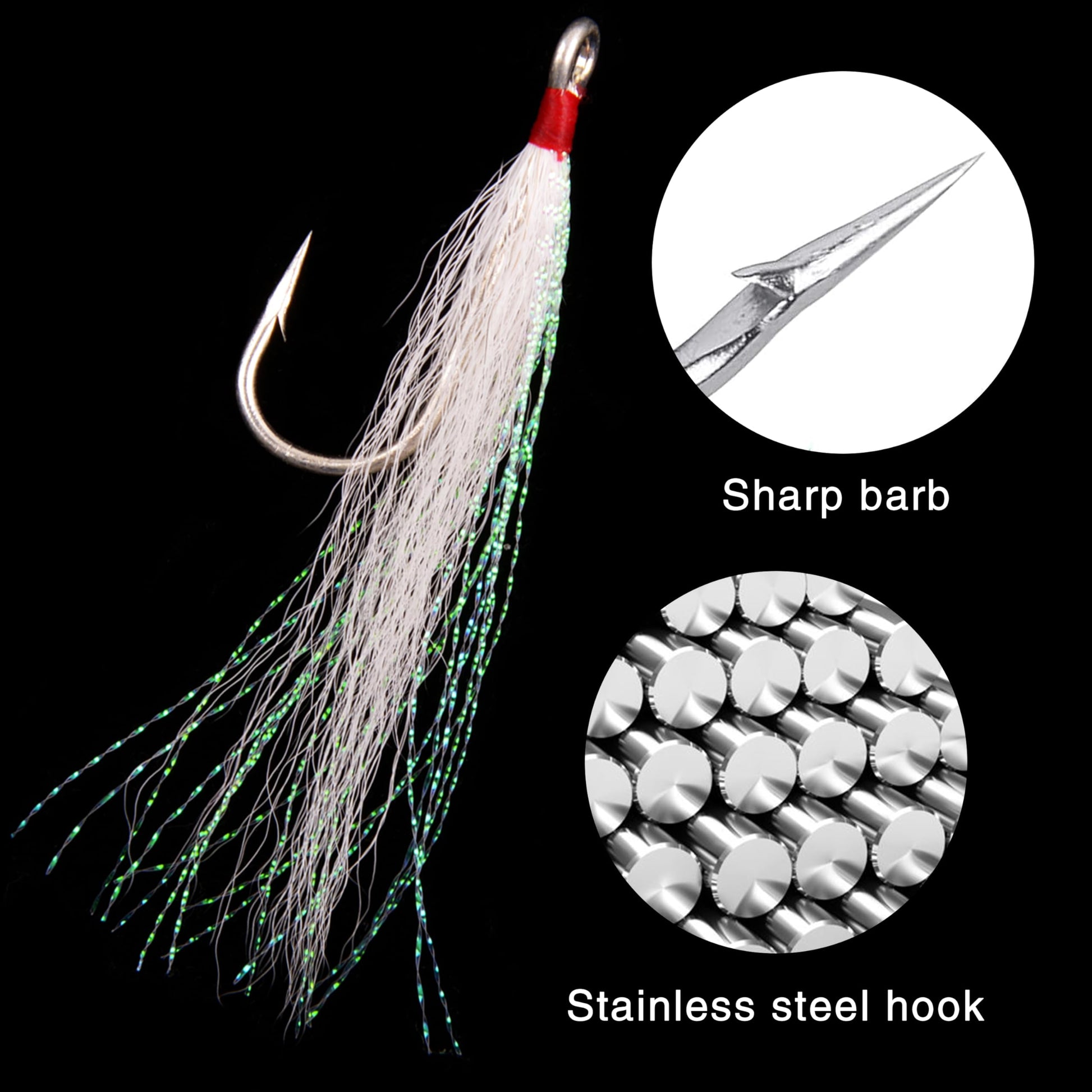 - 【BUCKTAIL TEASERS HOOK】Add flash plus lively action to almost any rig. Truth be told, using the bucktail teaser hook makes it more likely that a flounder will strike