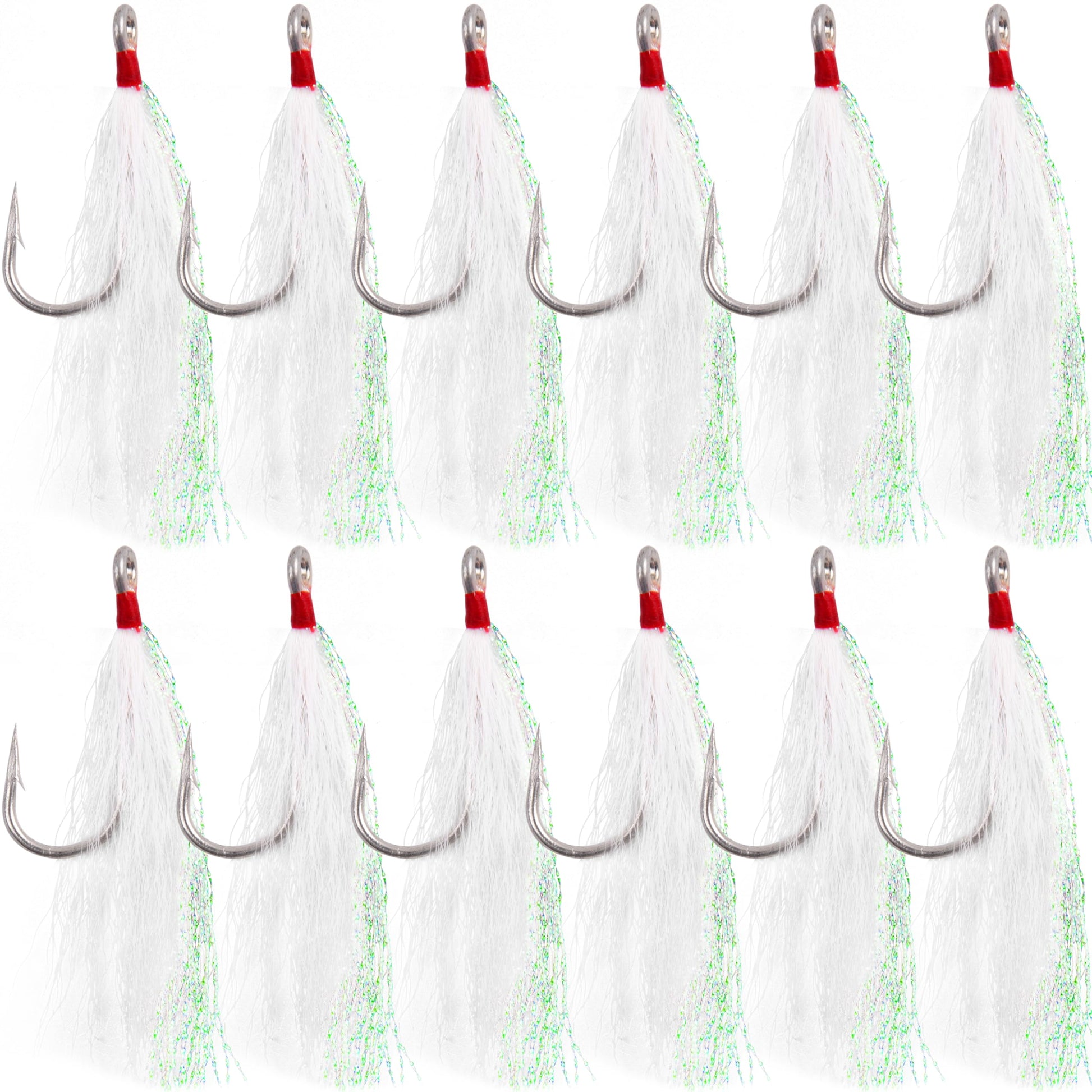 AGOOL Bucktail Teasers Fishing Hooks Saltwater Flounder Rig Stainless Steel Fishing Hooks Bucktail Mylar Teasers Inserted for Catfish Cod Flounder Hi/Lo Rig