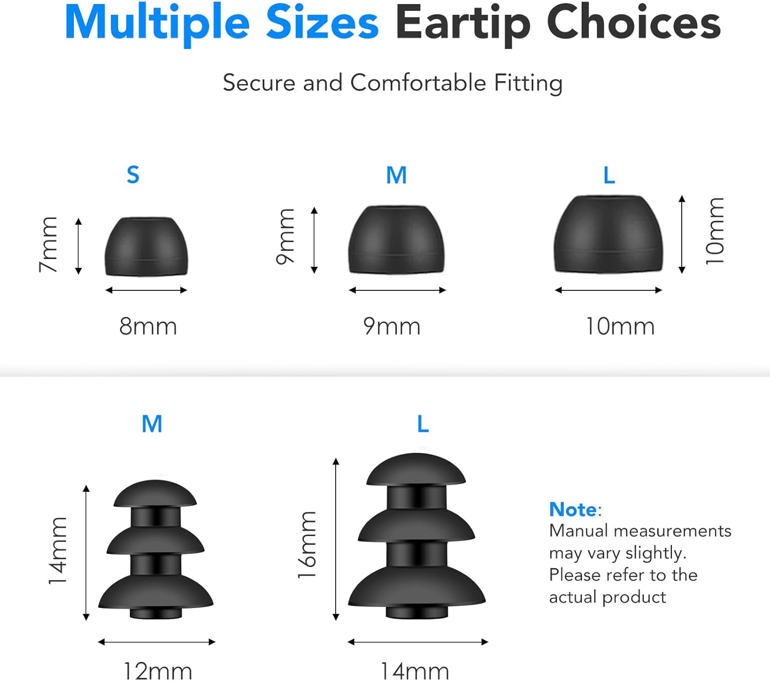 - COILED EARPHONE CORDS: Convenient use without any tangle. Two sizes(M/L) of eartips for swimming and (S/M/L) for general use give you a good fit and more choices.