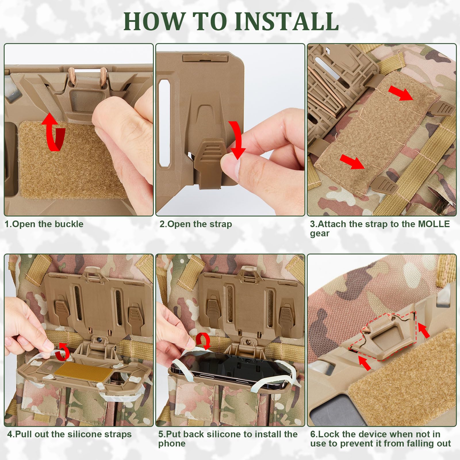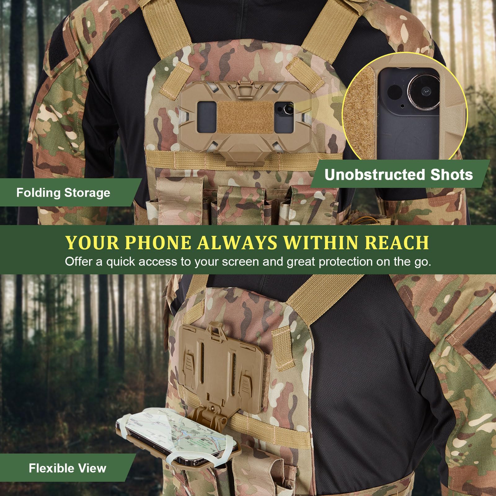 - **Versatile Compatibility** Designed to fit smartphones and navigation devices from 4.7 to 6.7 inches, it easily attaches to tactical vests, chest rigs, backpacks, or any MOLLE-compatible surface. Perfect for hiking, hunting, outdoor training, and airsoft games.